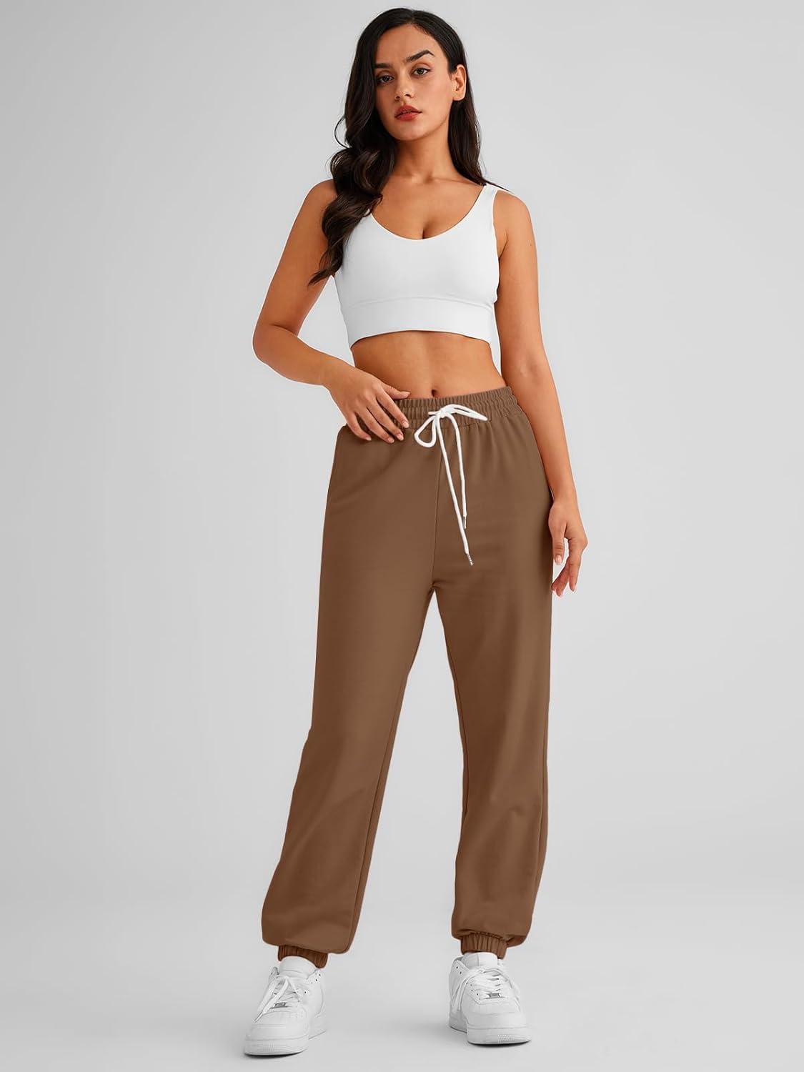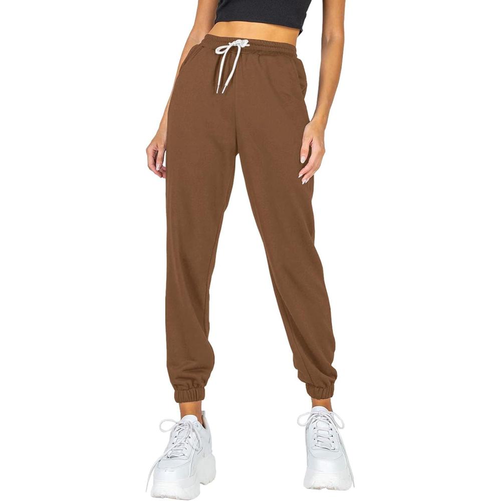 AUTOMET Women’s Cinch Bottom Sweatpants Athletic Joggers Lounge Pants with Pockets(Coffee)