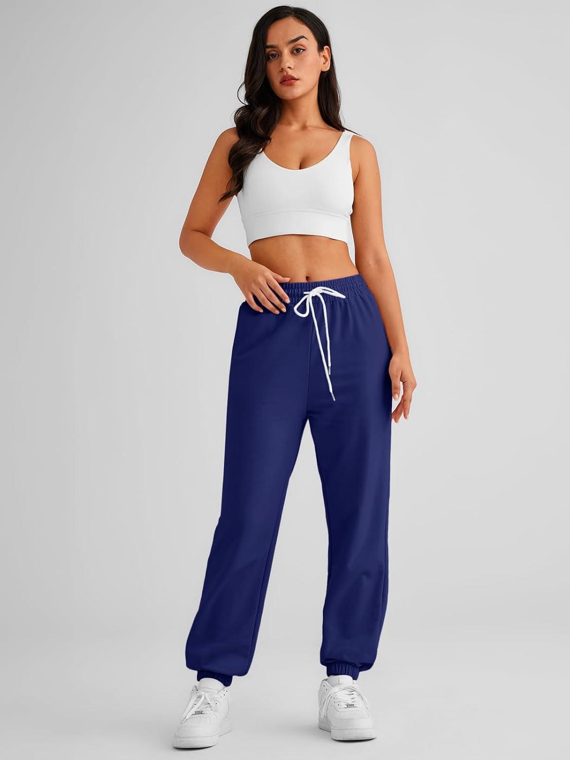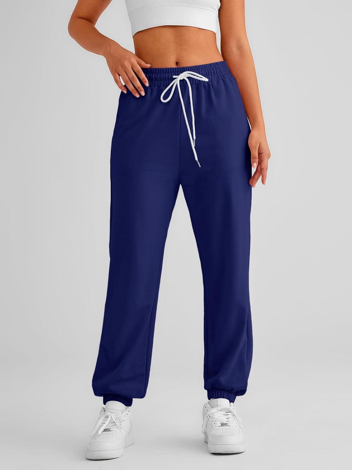 AUTOMET Women’s Cinch Bottom Sweatpants Athletic Joggers Lounge Pants with Pockets(Dark Blue)
