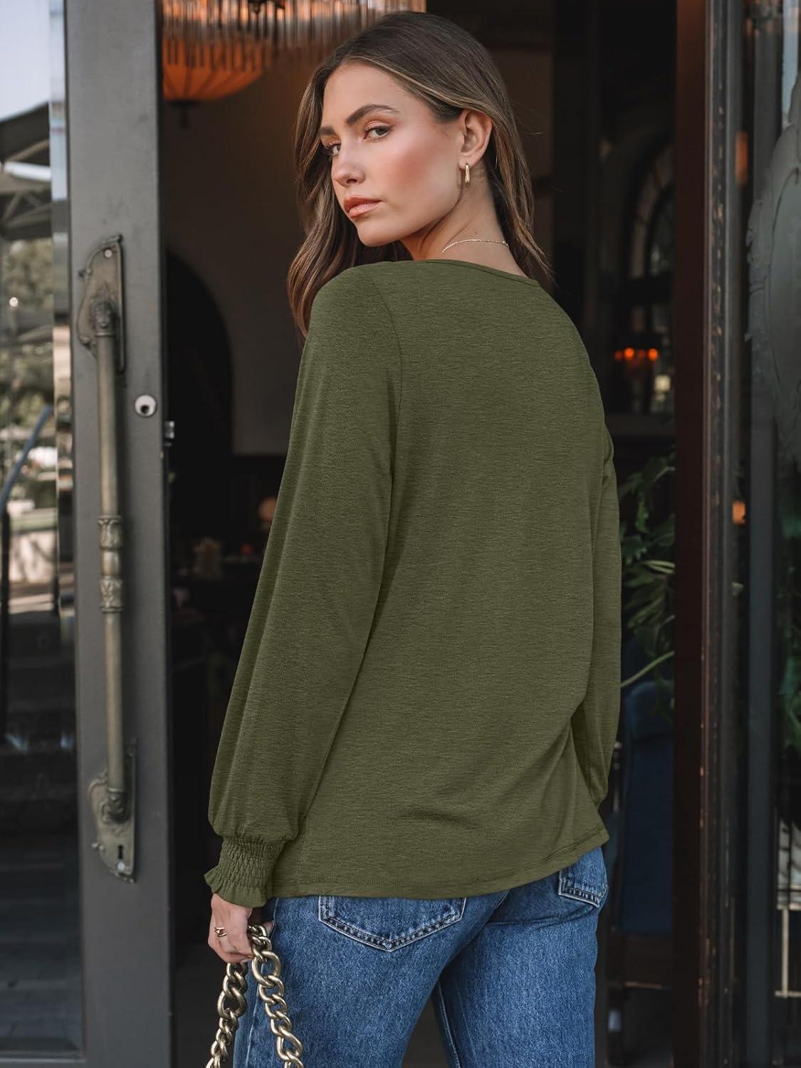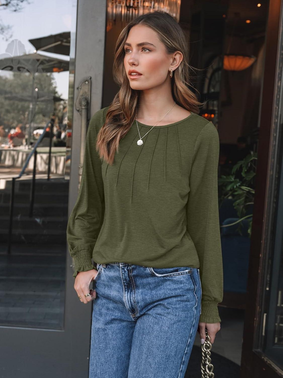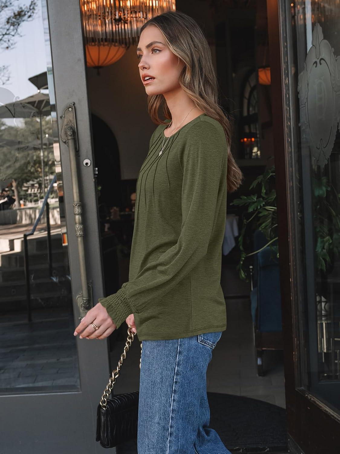 AUTOMET Womens Fall Fashion Long Sleeve Shirts Dressy Casual Pleated Basic Trendy Tops Winter Clothes 2025(Army Green)
