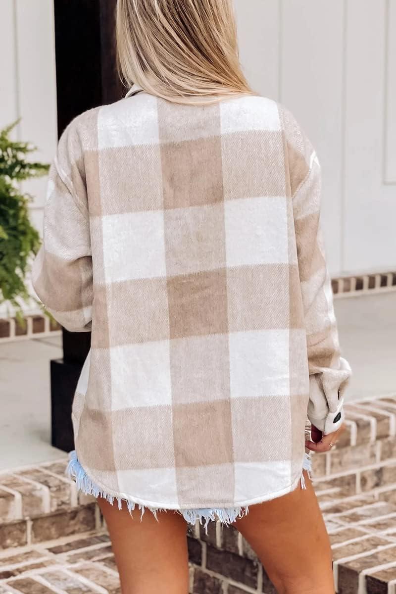 AUTOMET Womens Fall Outfits Fashion Clothes Shackets Flannel Plaid Button Down Long Sleeve Shirts Jackets(Brownwhite)