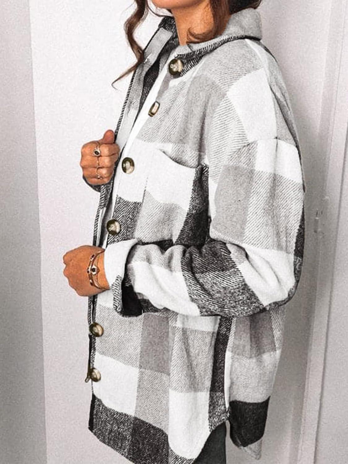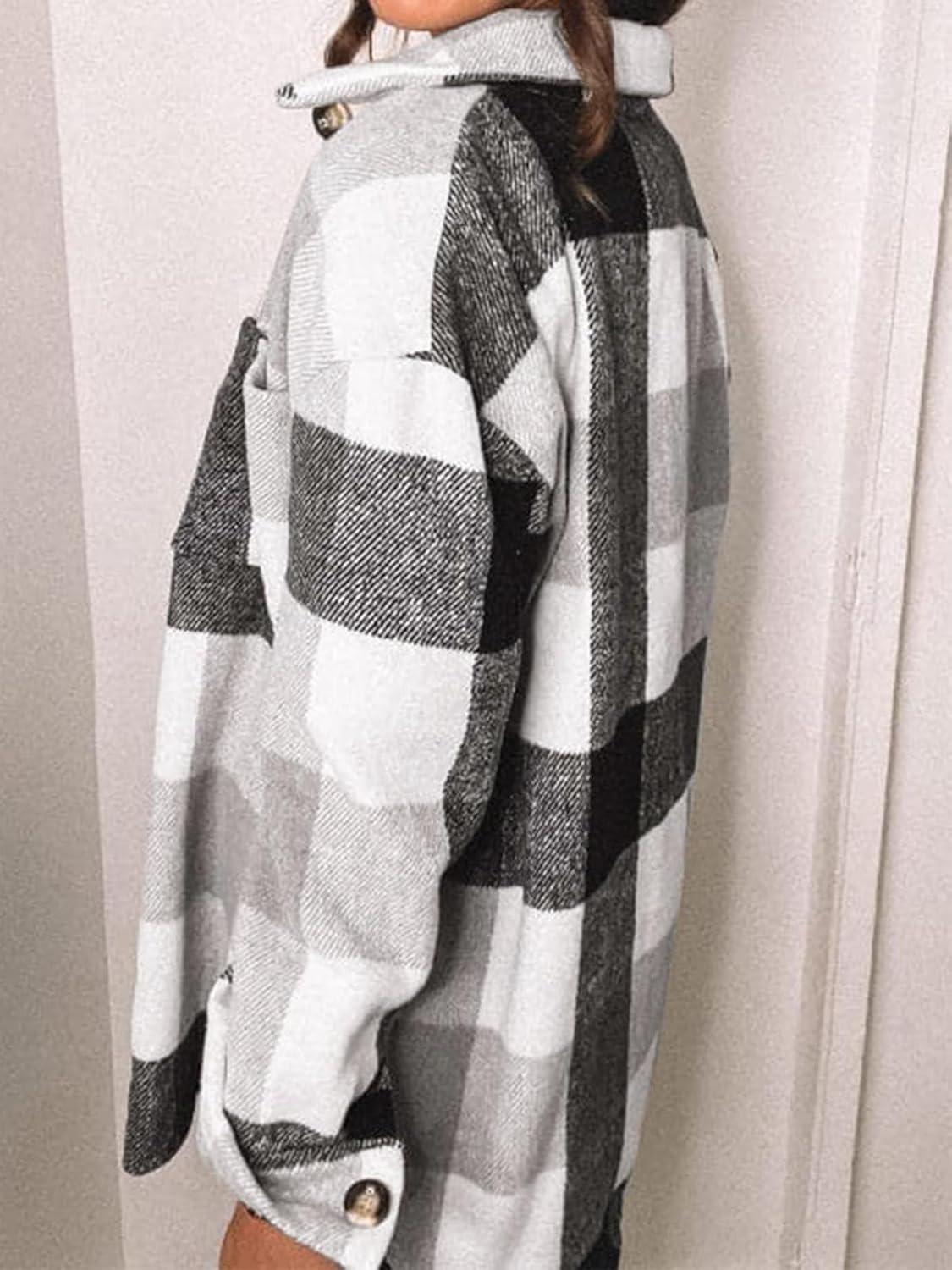 AUTOMET Womens Fall Outfits Fashion Clothes Shackets Flannel Plaid Button Down Long Sleeve Shirts Jackets(Whitegrey)