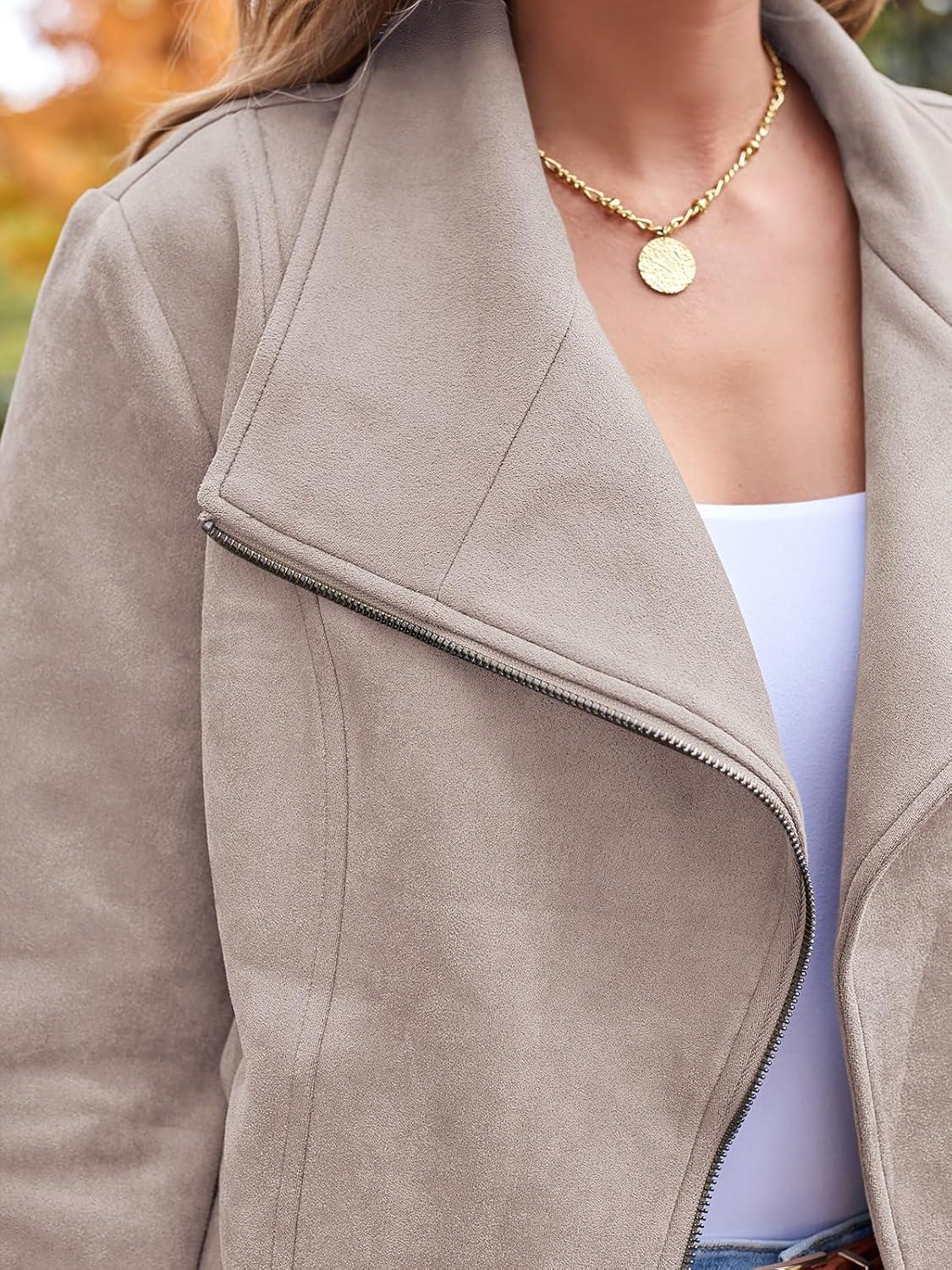 AUTOMET Womens Faux Leather Jackets Suede Fall Fashion 2025 Outfits Winter Clothes Open Front Cropped Coat Outwear(Apricot)