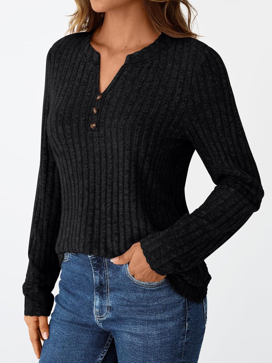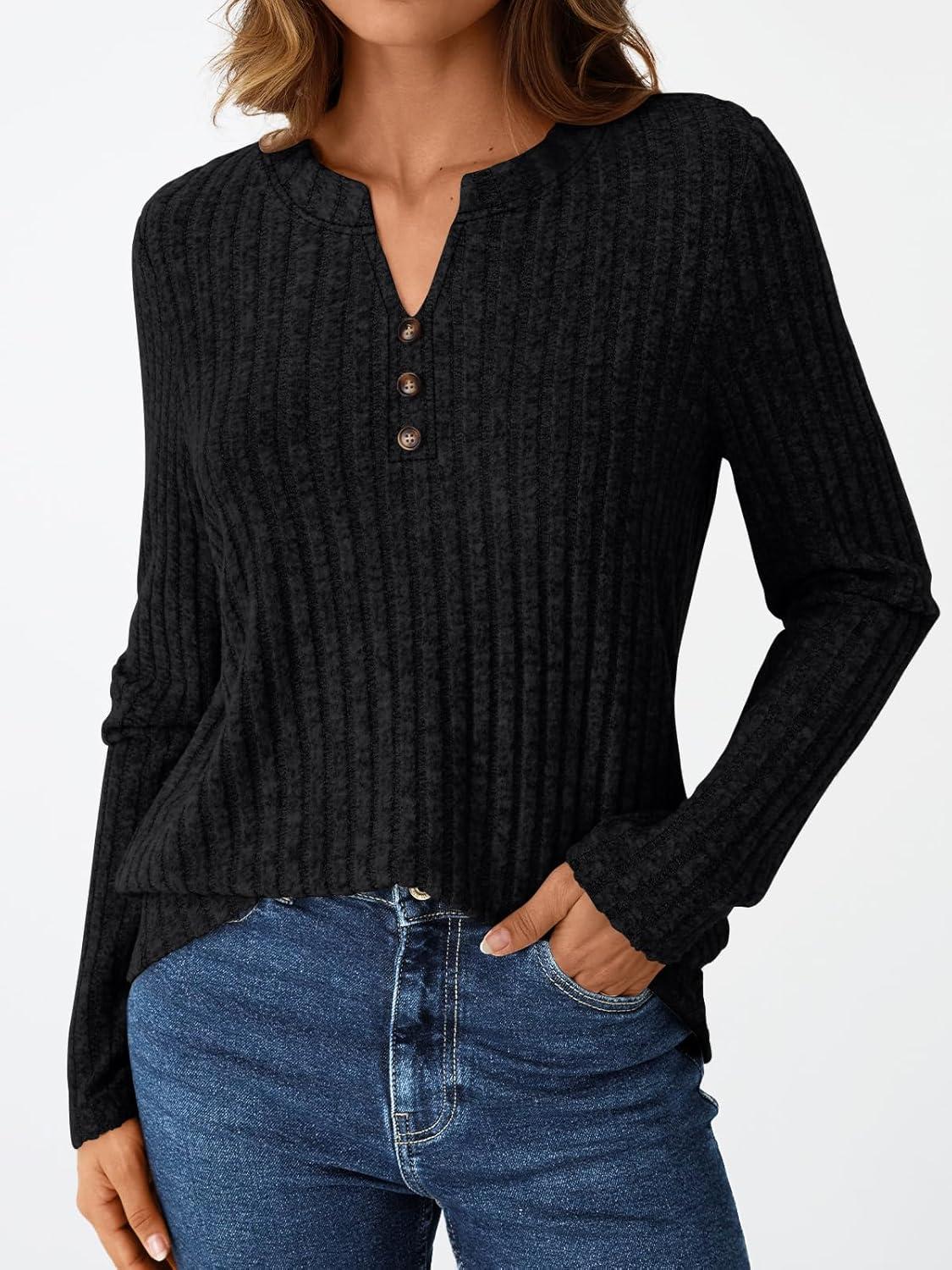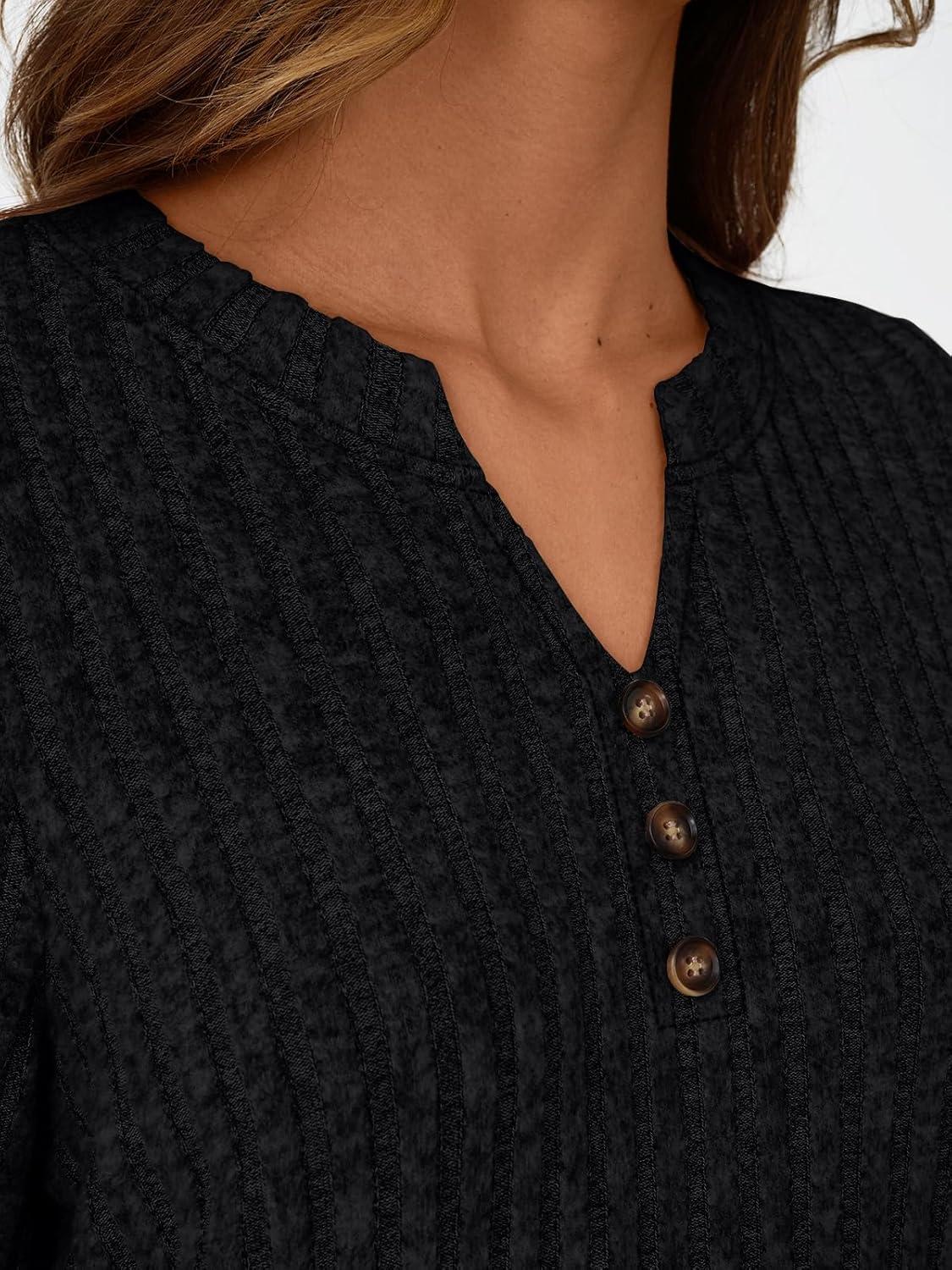 AUTOMET Womens Henley Long Sleeve Shirt Fall Top V Neck Fashion Dreesy Casual Tunic Sweaters Clothes Trendy Work Outfits(Black)