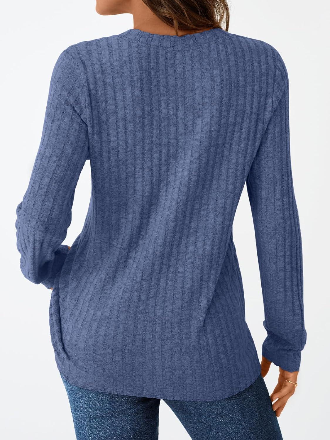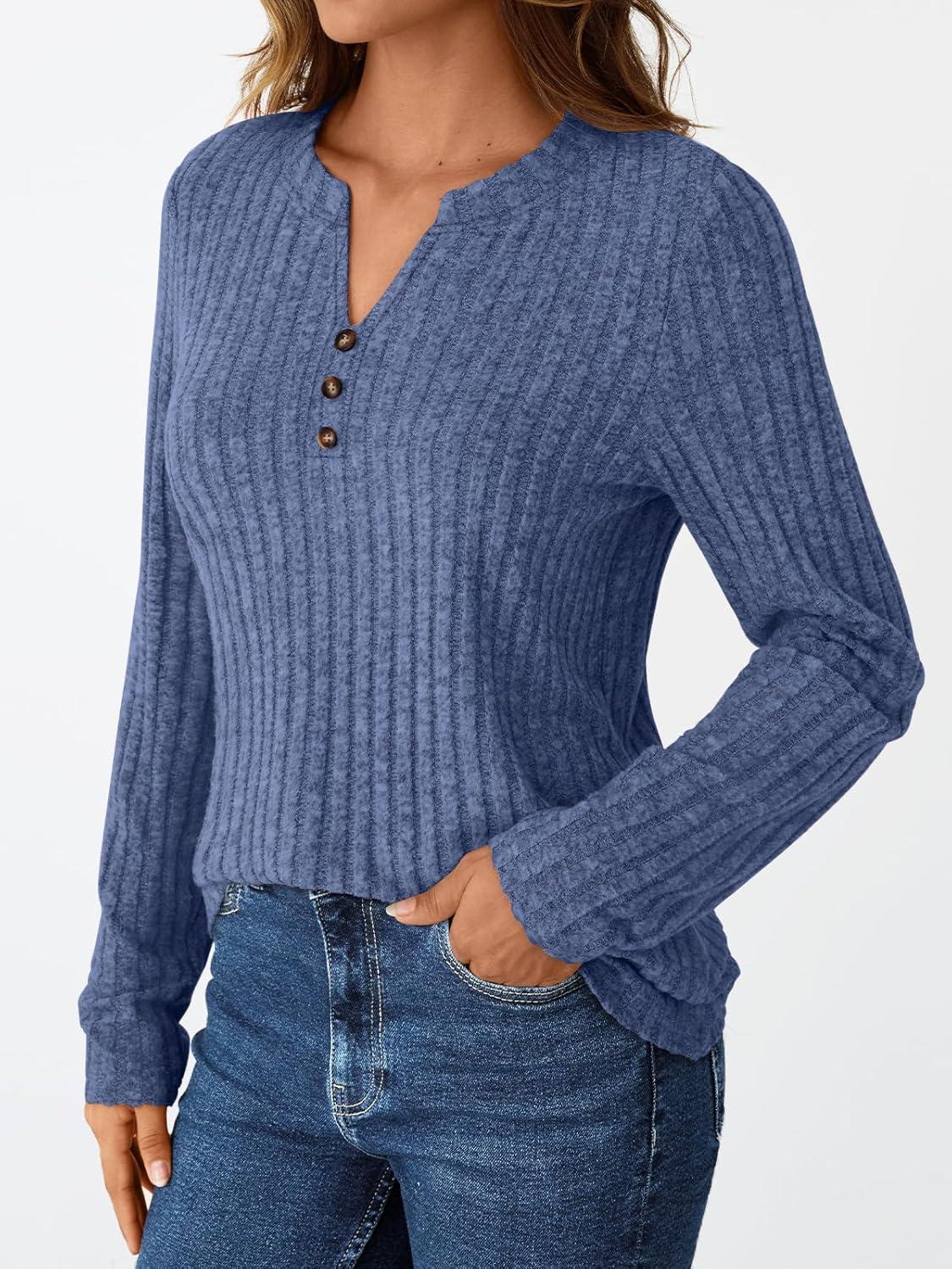 AUTOMET Womens Henley Long Sleeve Shirt Fall Top V Neck Fashion Dreesy Casual Tunic Sweaters Clothes Trendy Work Outfits(Blue)