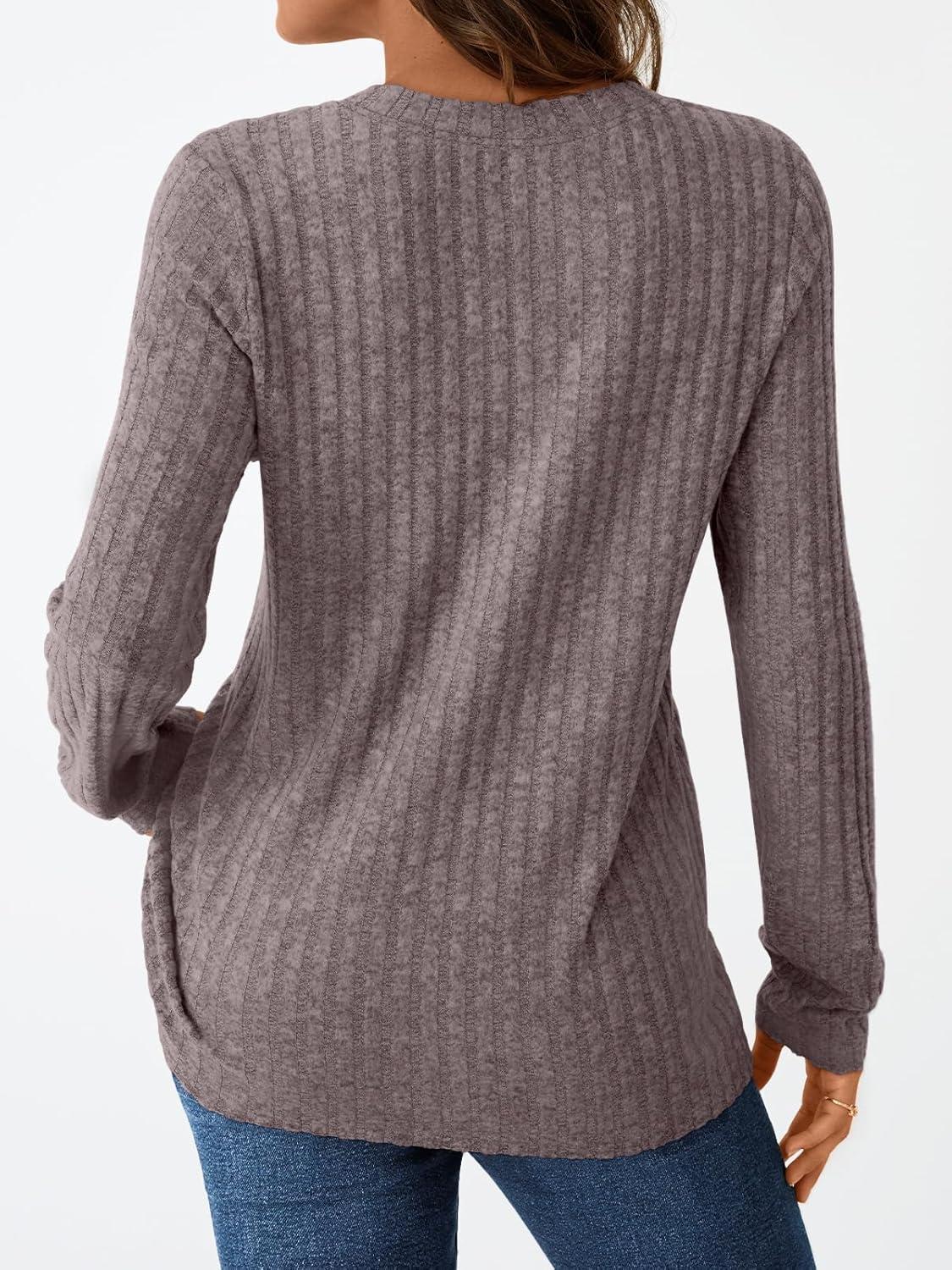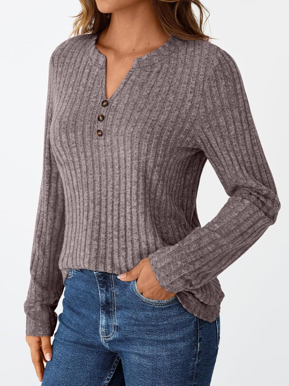 AUTOMET Womens Henley Long Sleeve Shirt Fall Top V Neck Fashion Dreesy Casual Tunic Sweaters Clothes Trendy Work Outfits(Nutmeg)
