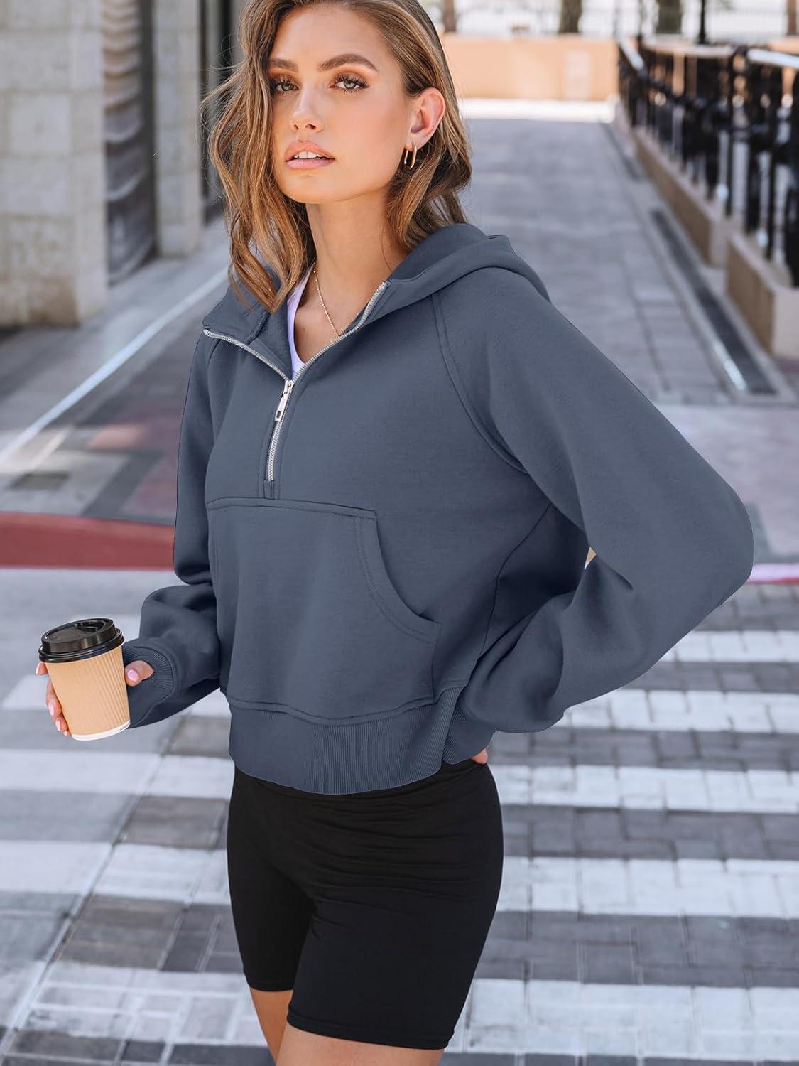 AUTOMET Womens Hoodies Fleece Fall Fashion Outfits Workout Sweatshirts Y2k Winter Zip Up Jackets Oversized Tops Clothes 2025(Greyblue)