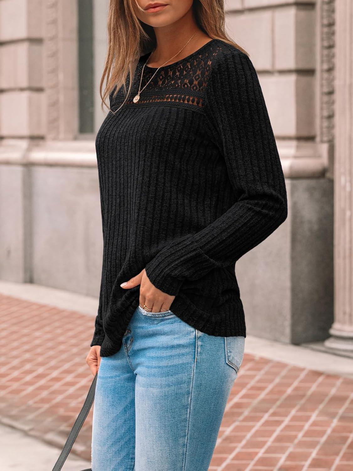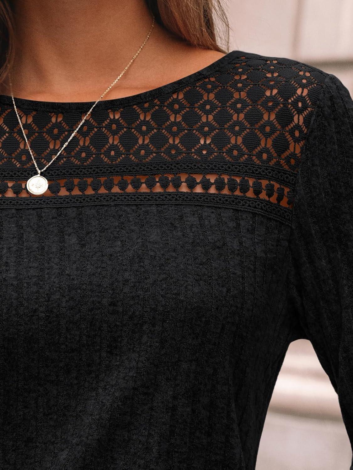 AUTOMET Womens Lace Long Sleeve Shirt Fall Top Fashion Dreesy Casual Tunic Sweaters Mesh Clothes Trendy Work Cute Outfits(Black)
