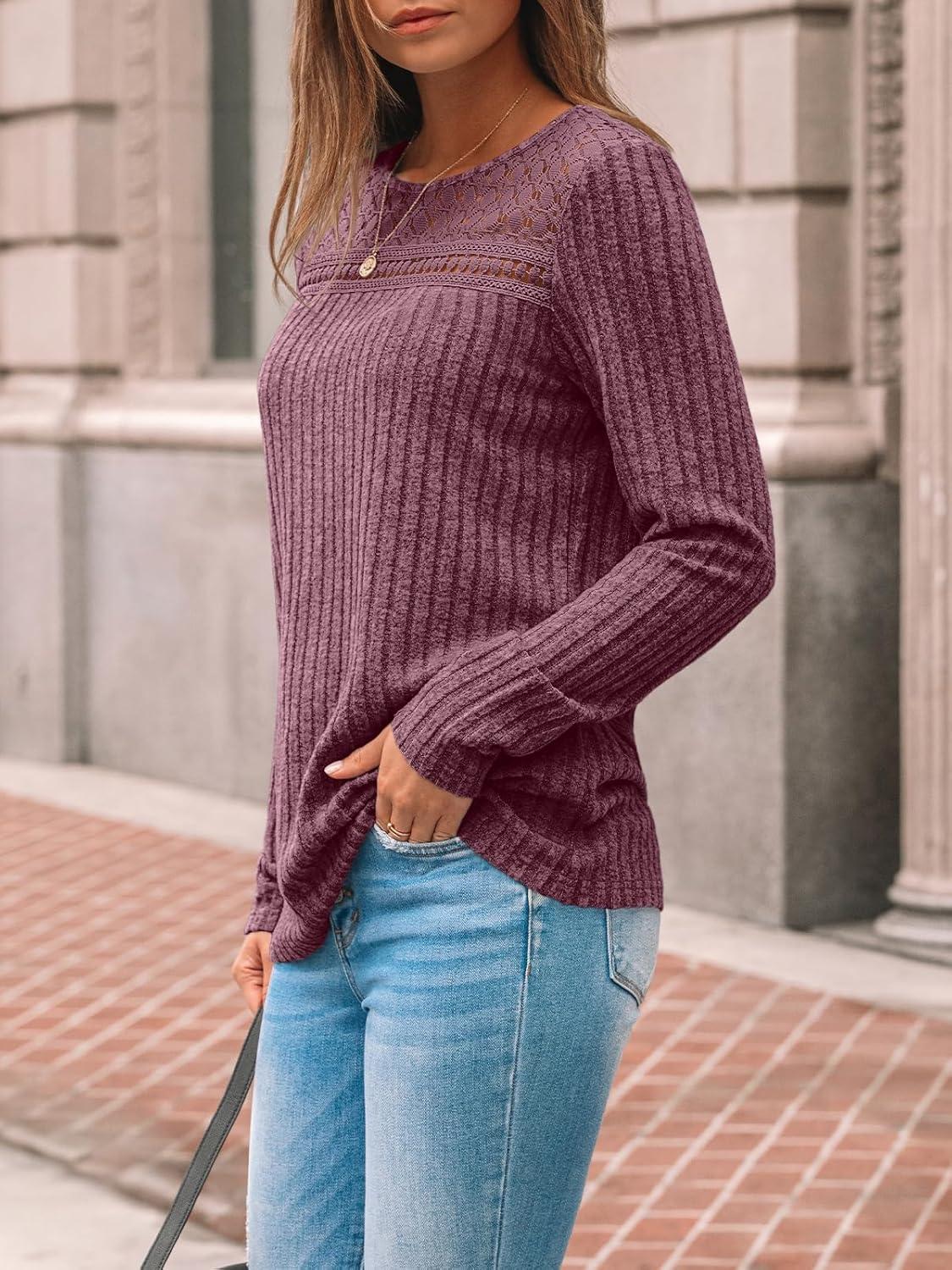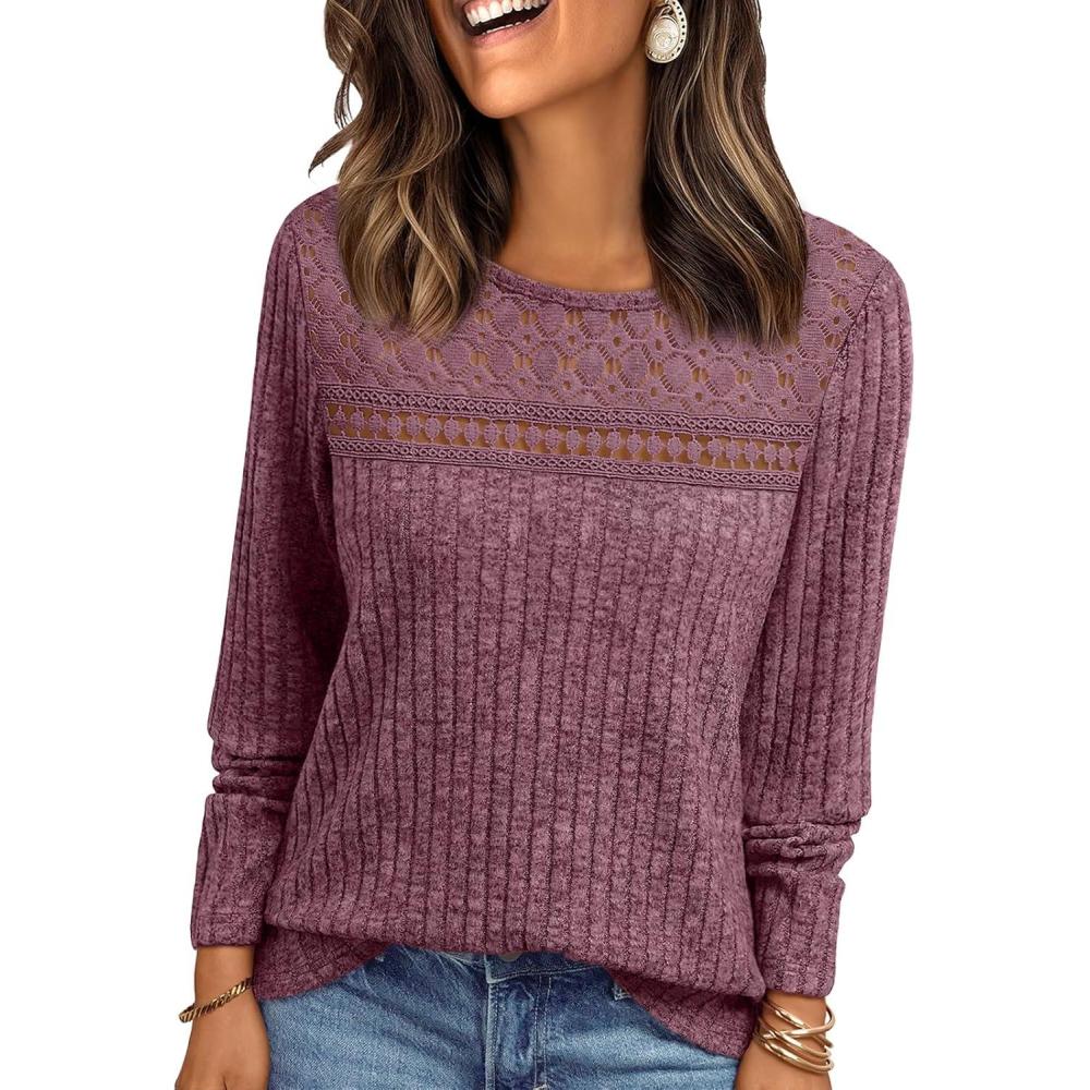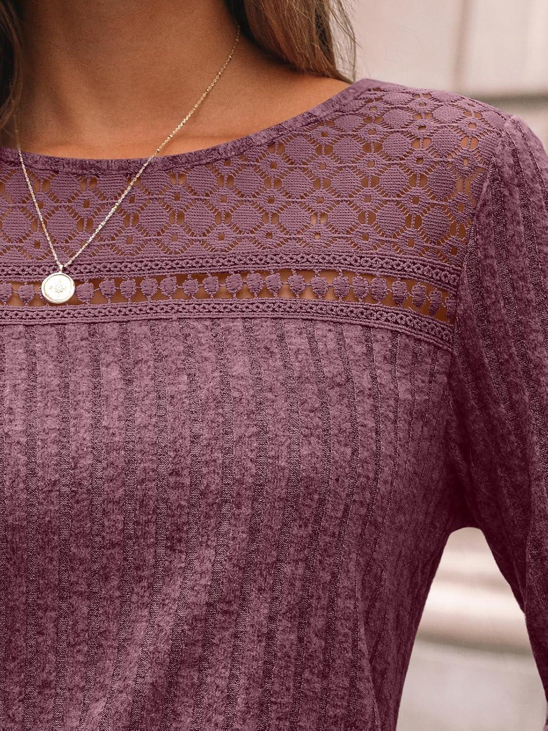 AUTOMET Womens Lace Long Sleeve Shirt Fall Top Fashion Dreesy Casual Tunic Sweaters Mesh Clothes Trendy Work Cute Outfits(Burgundy)
