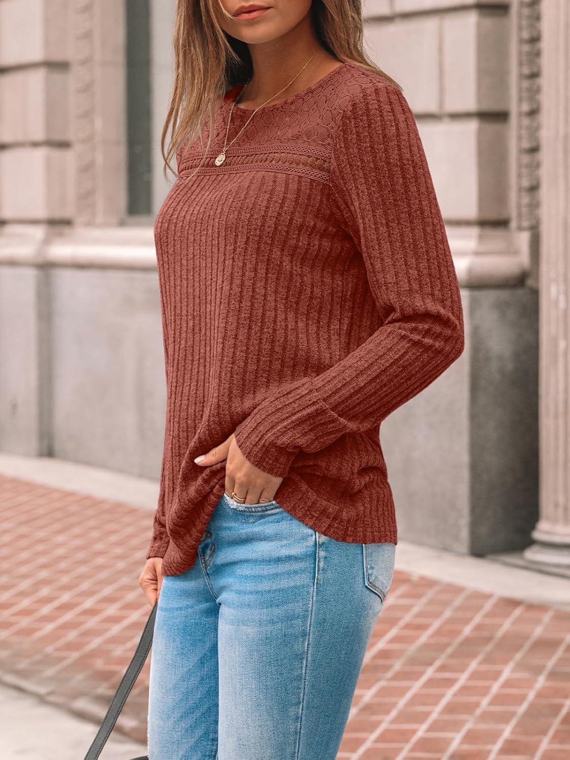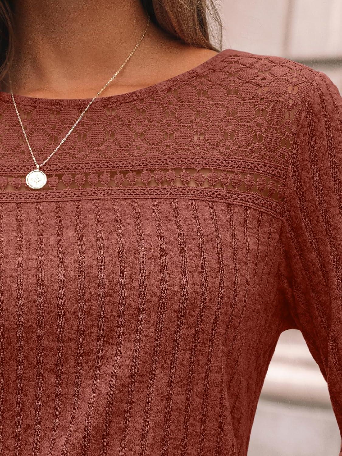 AUTOMET Womens Lace Long Sleeve Shirt Fall Top Fashion Dreesy Casual Tunic Sweaters Mesh Clothes Trendy Work Cute Outfits(Caramel)
