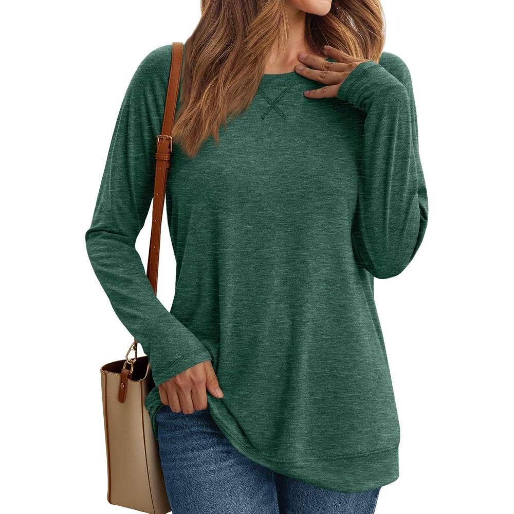 AUTOMET Womens Long Sleeve Crewneck Shirts Fall Winter Casual Work Tops Loose Fit Clothes Trendy Basic Outfits 2025(Green)