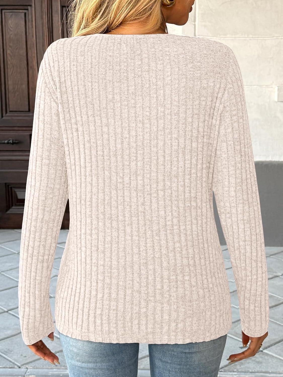 AUTOMET Womens Long Sleeve Shirt Fall Fashion 2025 V Neck Sweater Tunic Tops Dressy Casual Work Blouse Trendy Winter Clothing(Apricot)