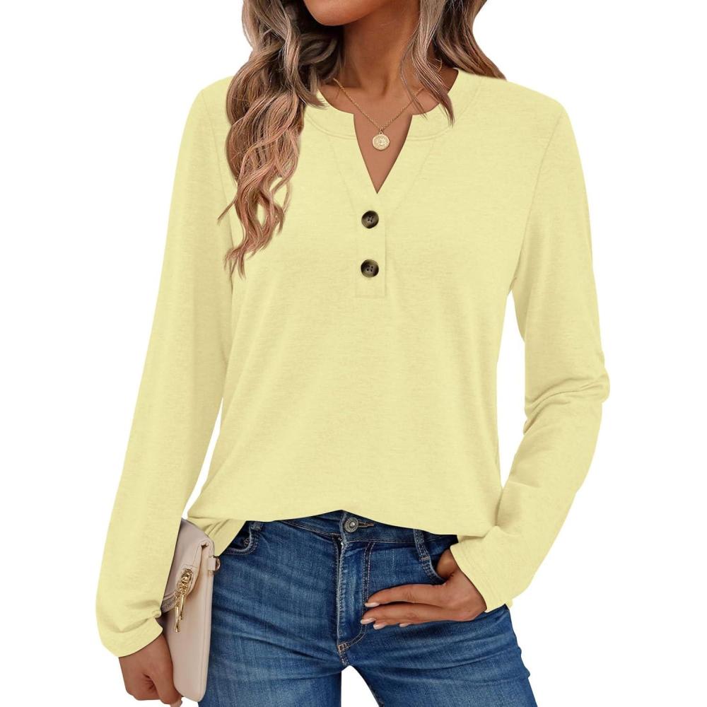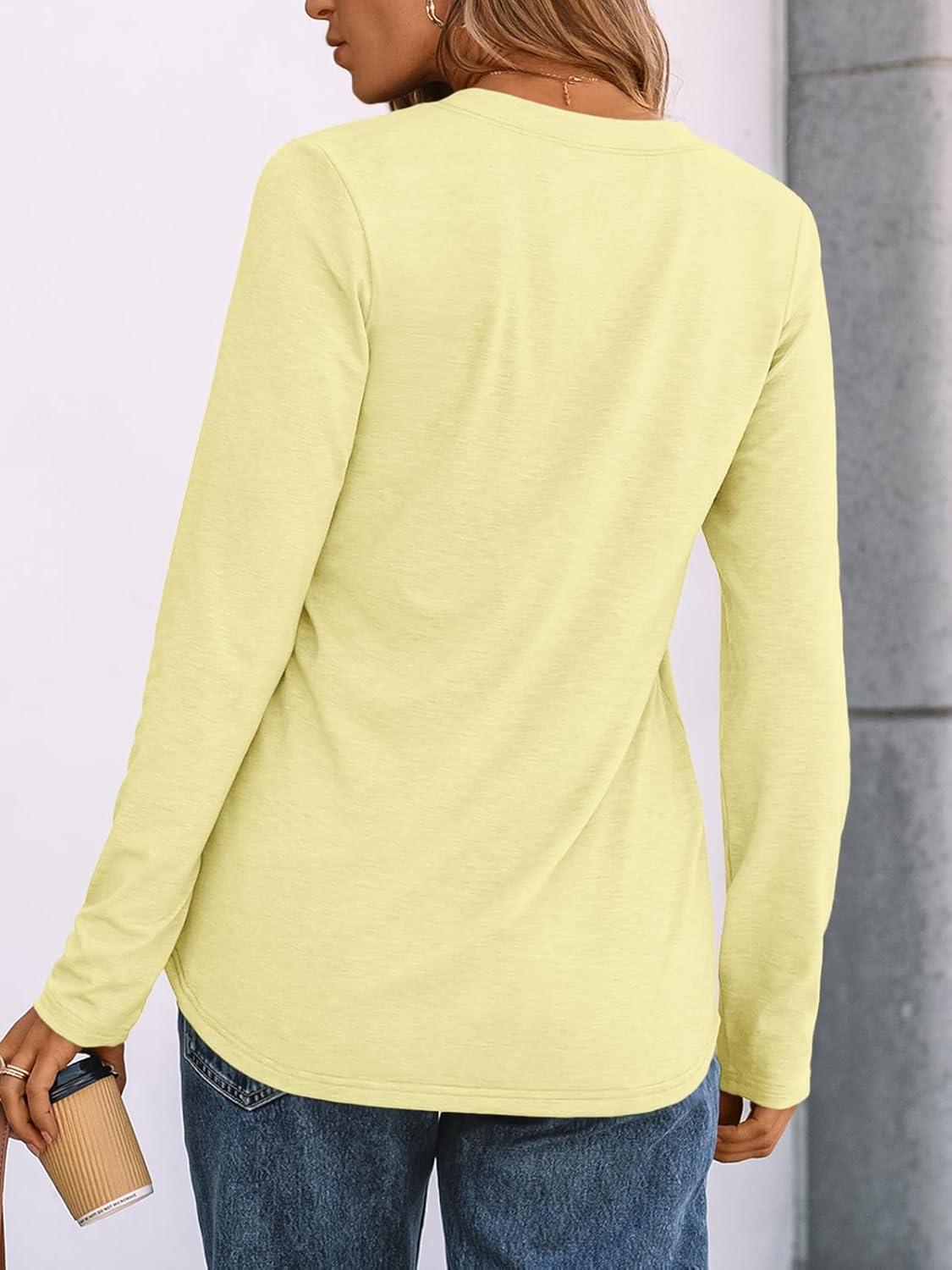 AUTOMET Women’s Long Sleeve Shirts 2025 Fall Fashion Dressy Casual Tops Trendy Henley Blouses Cute Work Outfits Clothes(Butter Yellow)