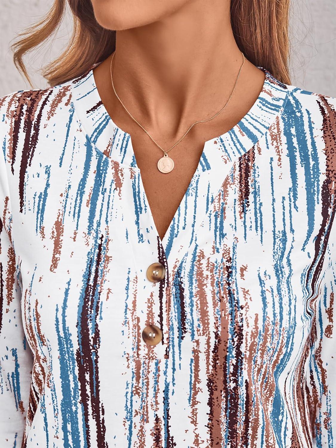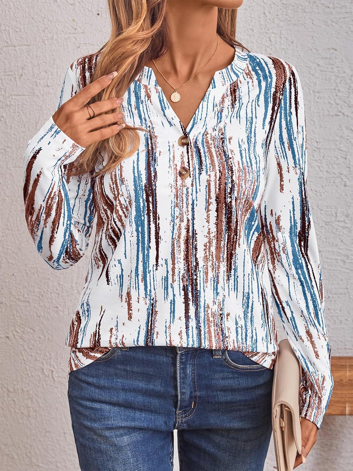 AUTOMET Women’s Long Sleeve Shirts 2025 Fall Fashion Dressy Casual Tops Trendy Henley Blouses Cute Work Outfits Clothes(Gradient Multi)