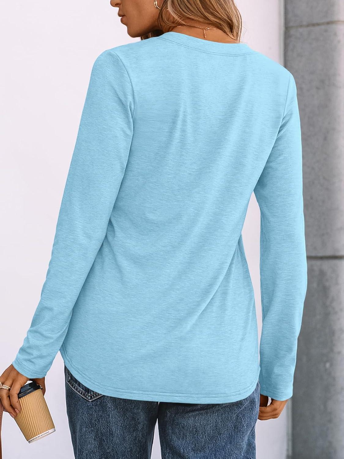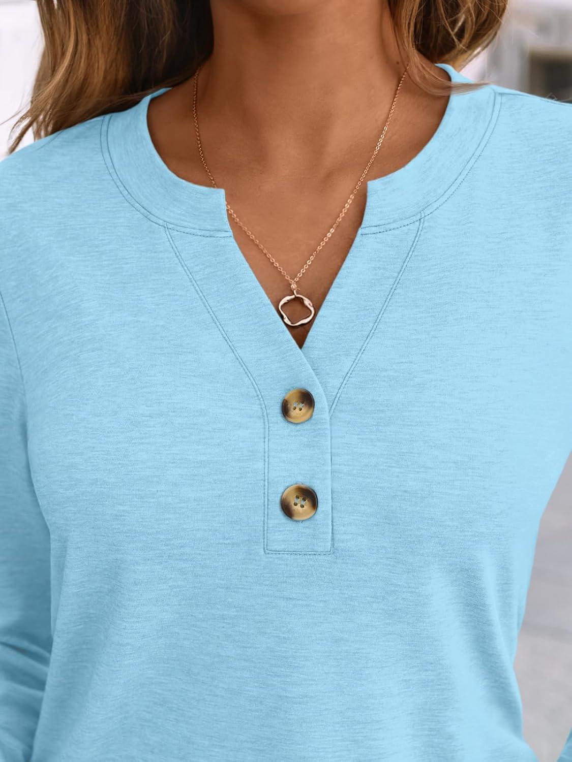 AUTOMET Women’s Long Sleeve Shirts 2025 Fall Fashion Dressy Casual Tops Trendy Henley Blouses Cute Work Outfits Clothes(Sky)