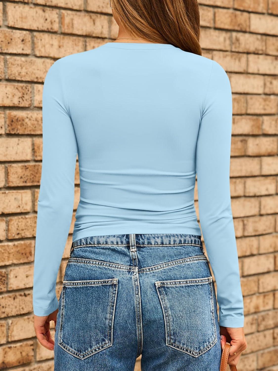 AUTOMET Womens Long Sleeve Shirts Basic Compression Going Out Crop Tops Fall Fashion Y2K Clothes 2025(Baby Blue)