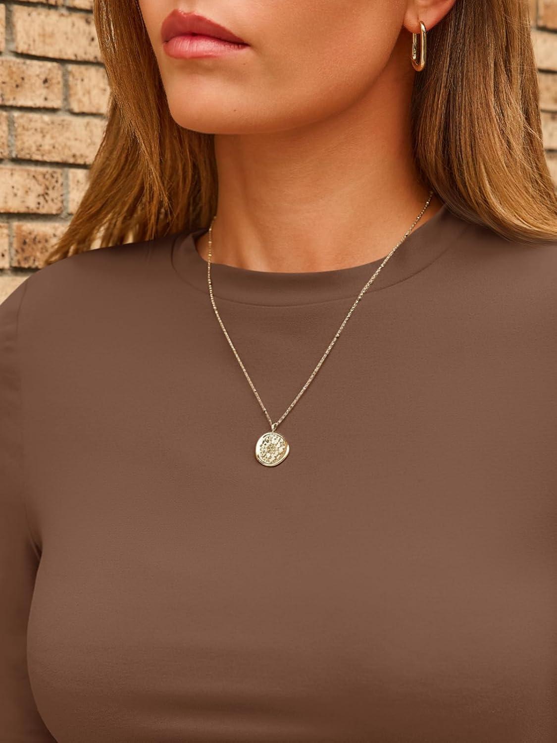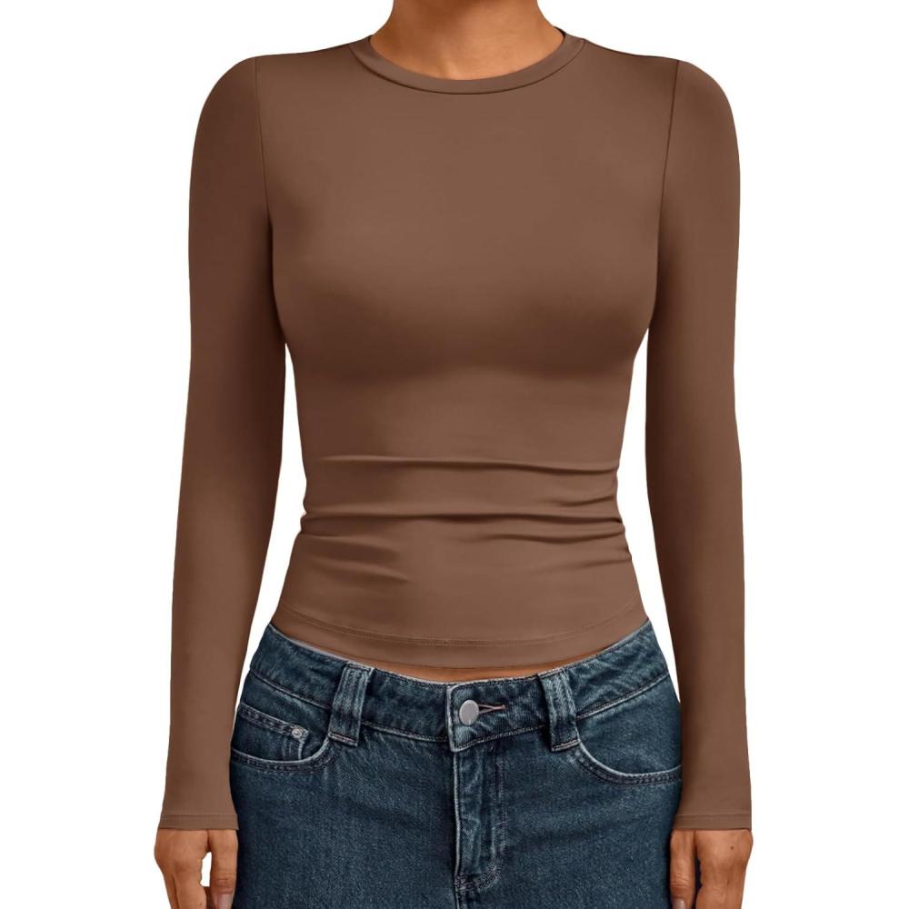 AUTOMET Womens Long Sleeve Shirts Basic Compression Going Out Crop Tops Fall Fashion Y2K Clothes 2025(Brown)