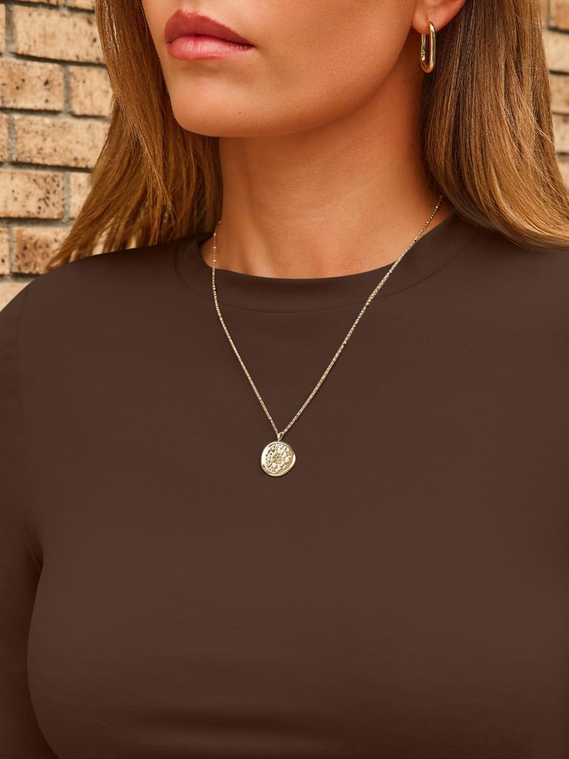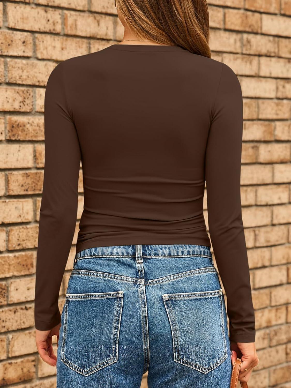 AUTOMET Womens Long Sleeve Shirts Basic Compression Going Out Crop Tops Fall Fashion Y2K Clothes 2025(Chocolate Brown)