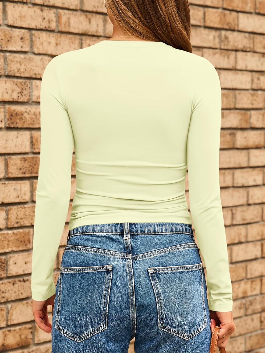 AUTOMET Womens Long Sleeve Shirts Basic Compression Going Out Crop Tops Fall Fashion Y2K Clothes 2025(Lemon Yellow)