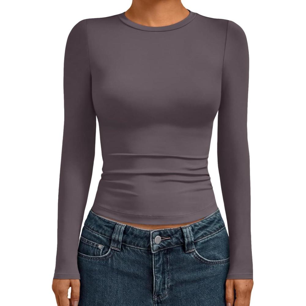 AUTOMET Womens Long Sleeve Shirts Basic Compression Going Out Crop Tops Fall Fashion Y2K Clothes 2025(Nutmeg)