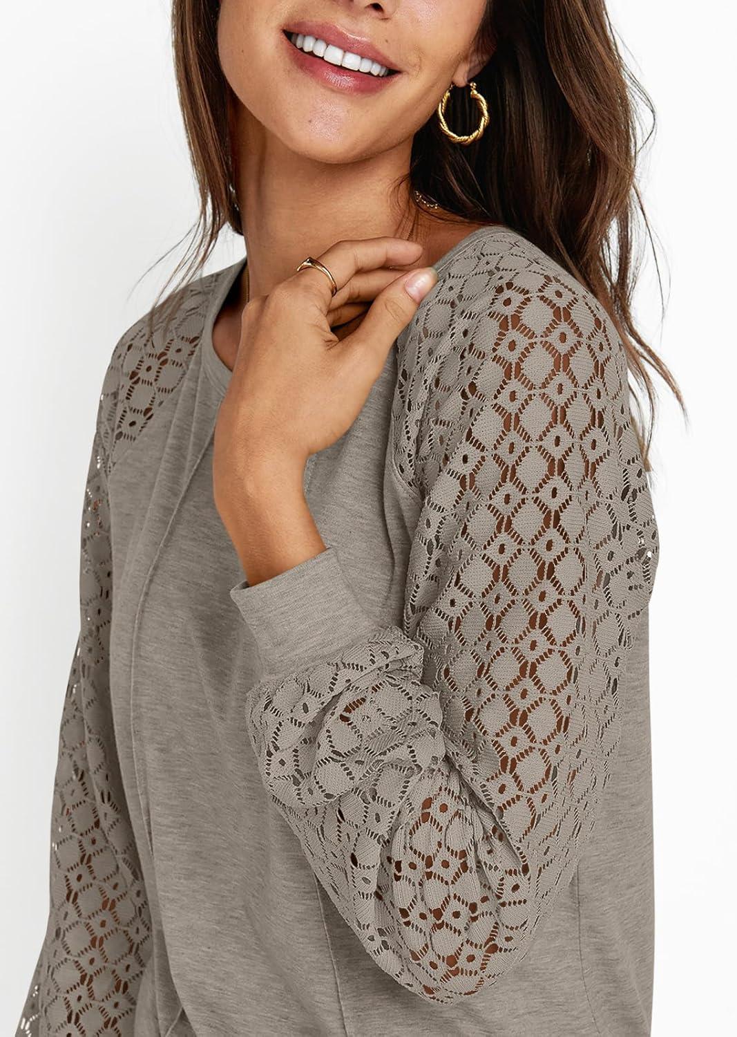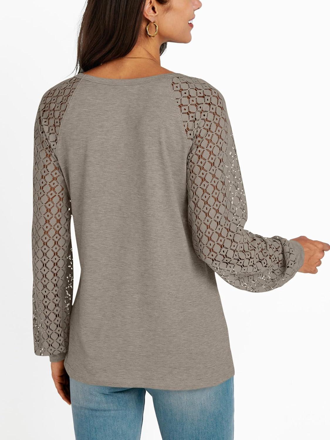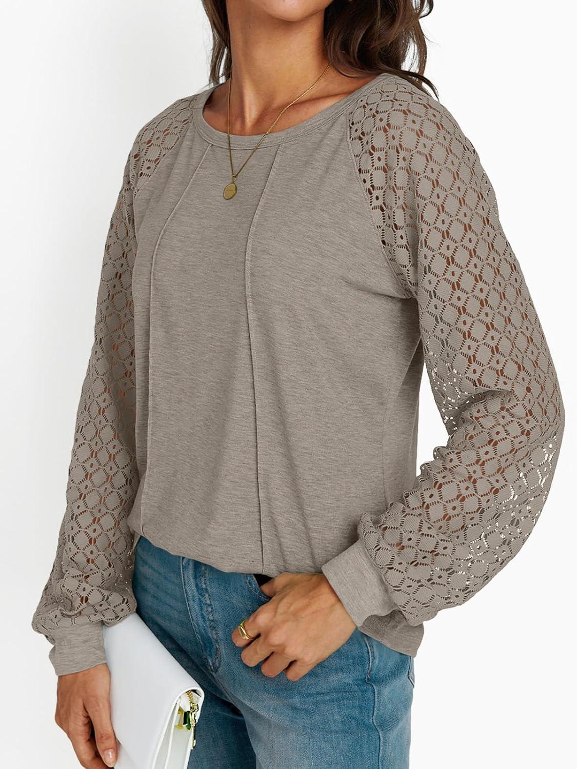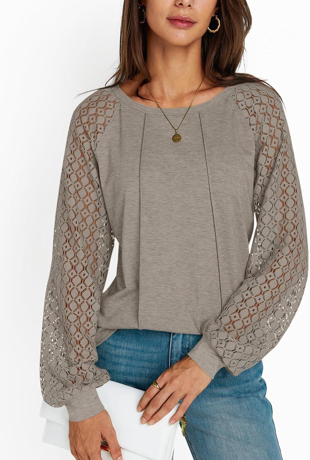AUTOMET Womens Long Sleeve Shirts Casual Tops Dressy Outfits Fall Fashion Blouses Lace Clothes Y2k(Khaki)
