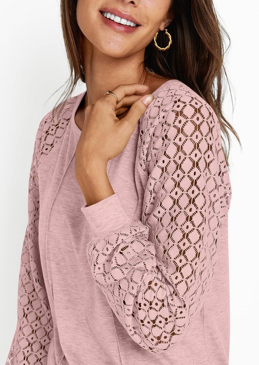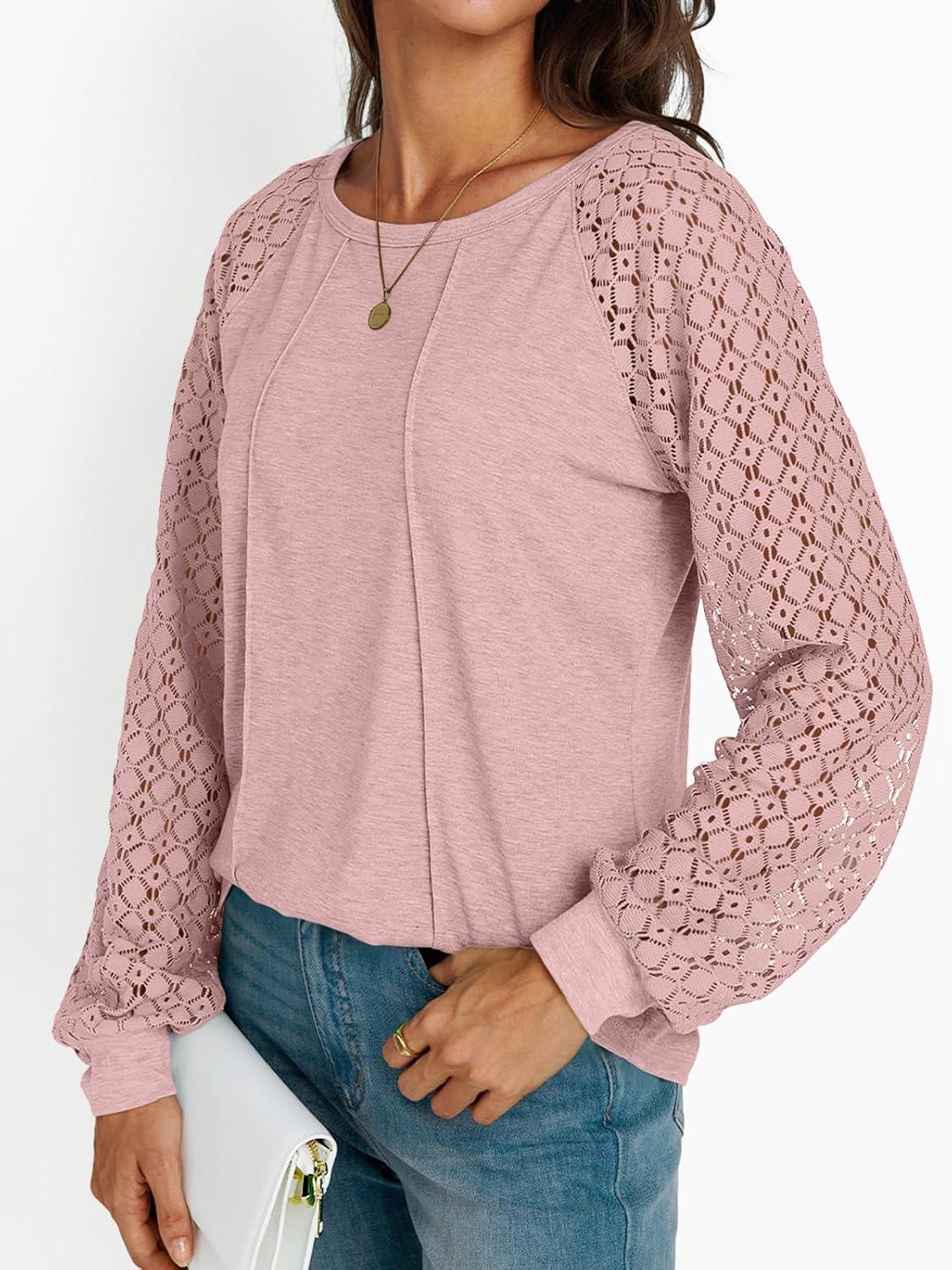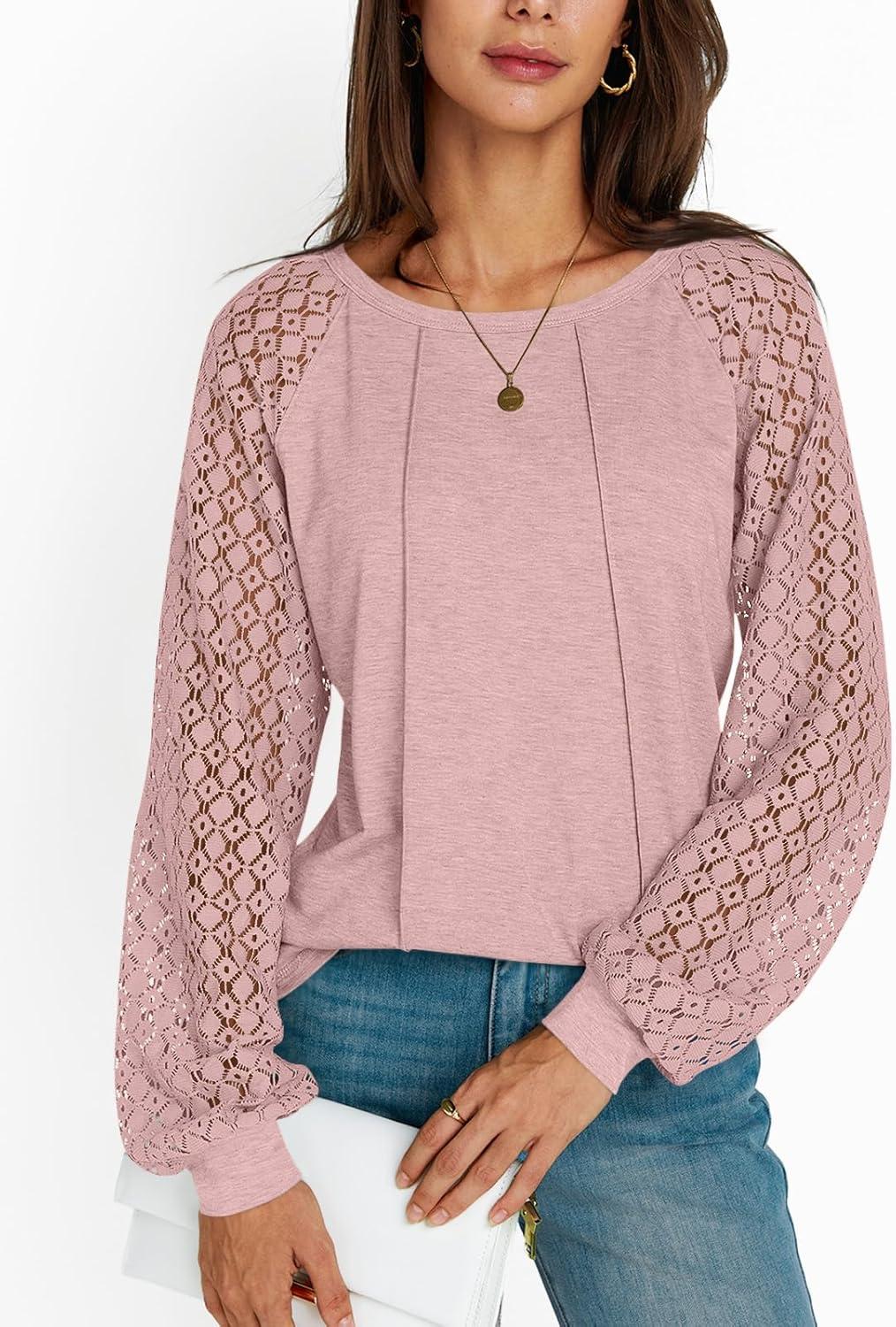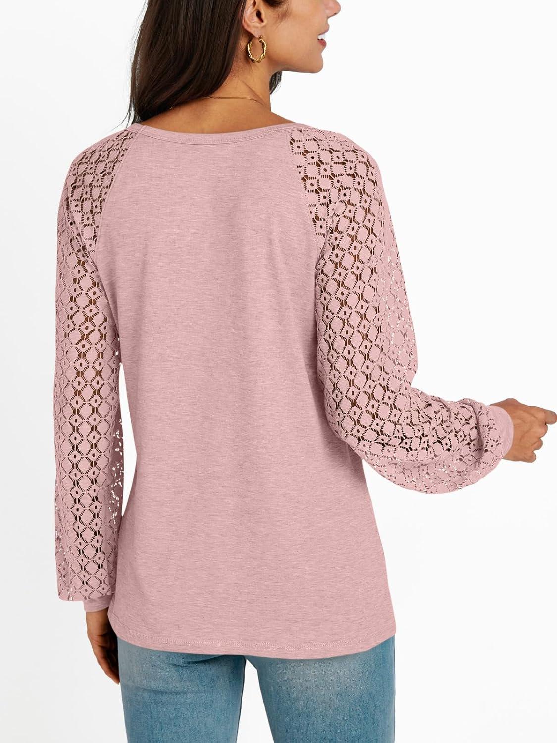 AUTOMET Womens Long Sleeve Shirts Casual Tops Dressy Outfits Fall Fashion Blouses Lace Clothes Y2k(Pink)