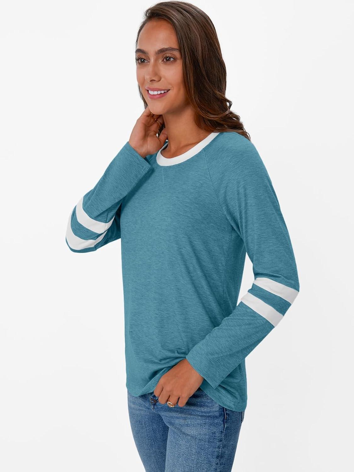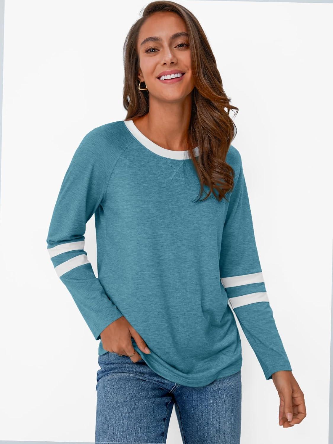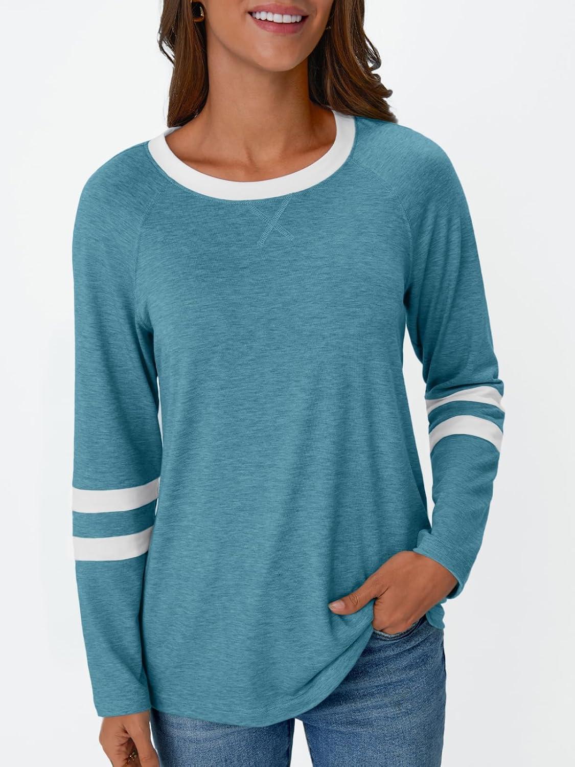 AUTOMET Womens Long Sleeve Shirts Color Block Casual Crewneck Tops Tshirt Basic Tee Fall Fashion Winter Clothing Outfits(Bluegreen)
