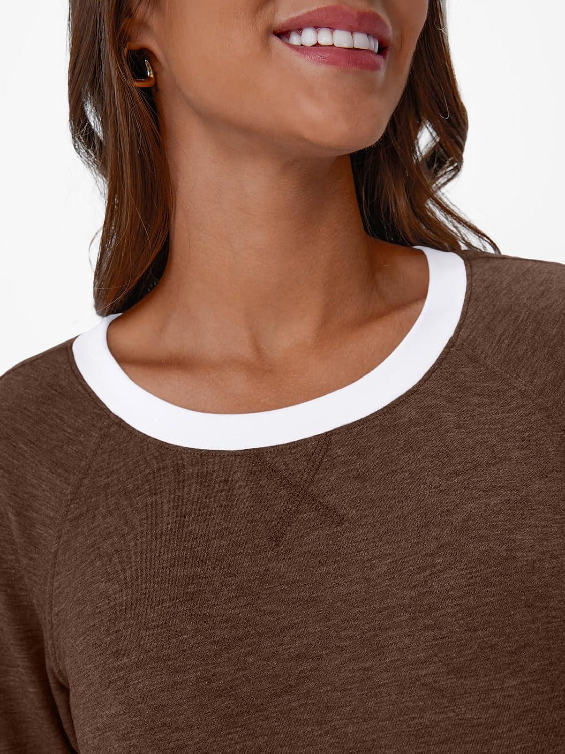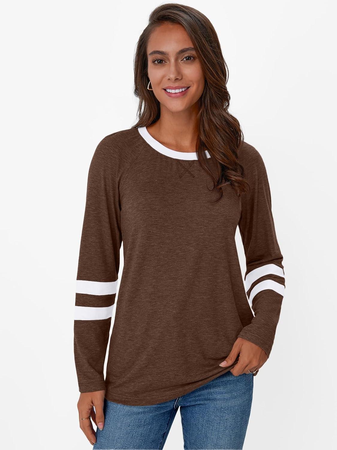 AUTOMET Womens Long Sleeve Shirts Color Block Casual Crewneck Tops Tshirt Basic Tee Fall Fashion Winter Clothing Outfits(Chocolate Brown)
