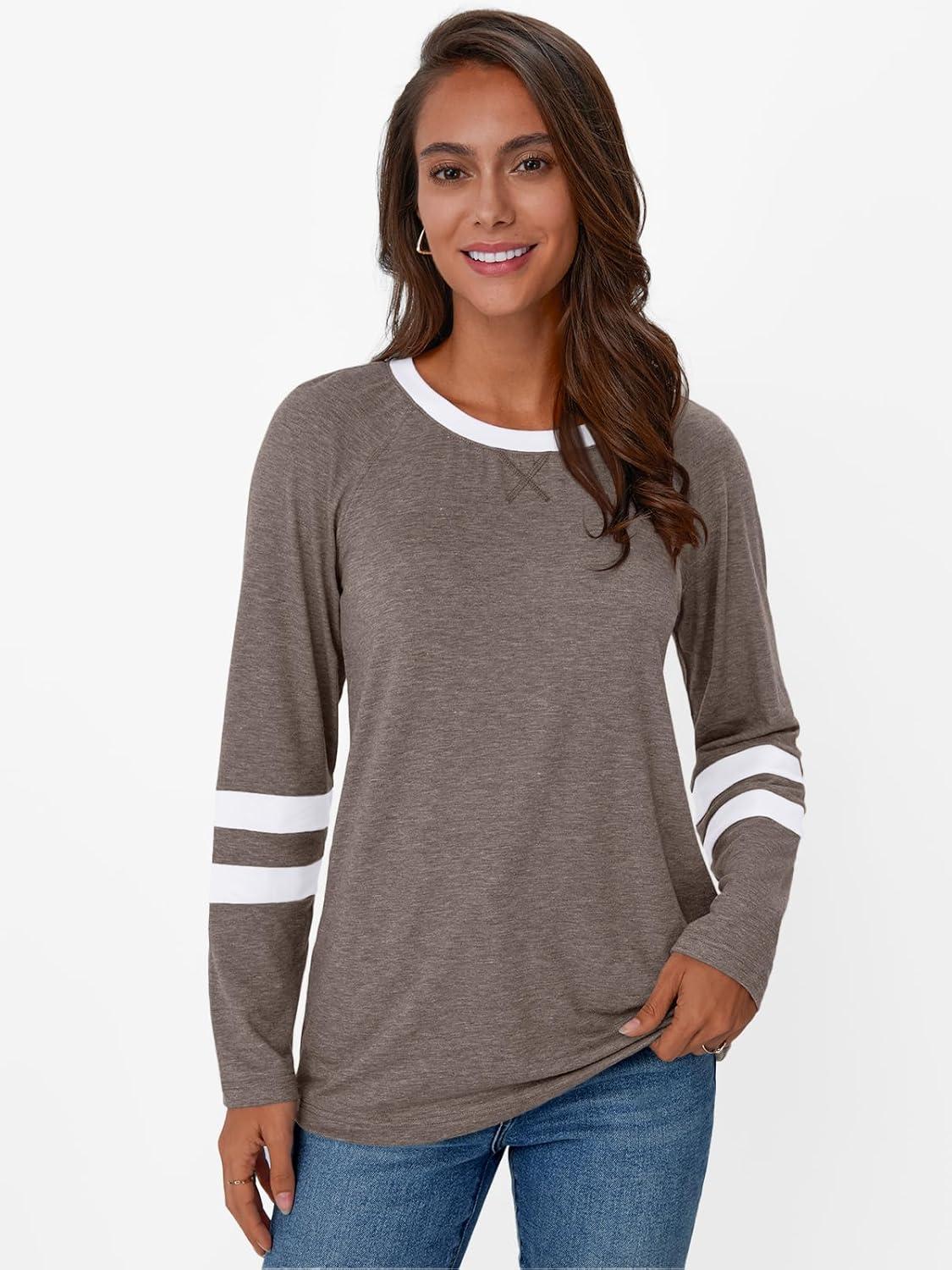 AUTOMET Womens Long Sleeve Shirts Color Block Casual Crewneck Tops Tshirt Basic Tee Fall Fashion Winter Clothing Outfits(Coffeegrey)