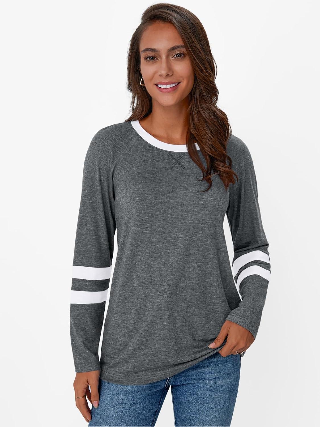AUTOMET Womens Long Sleeve Shirts Color Block Casual Crewneck Tops Tshirt Basic Tee Fall Fashion Winter Clothing Outfits(Darkgrey)