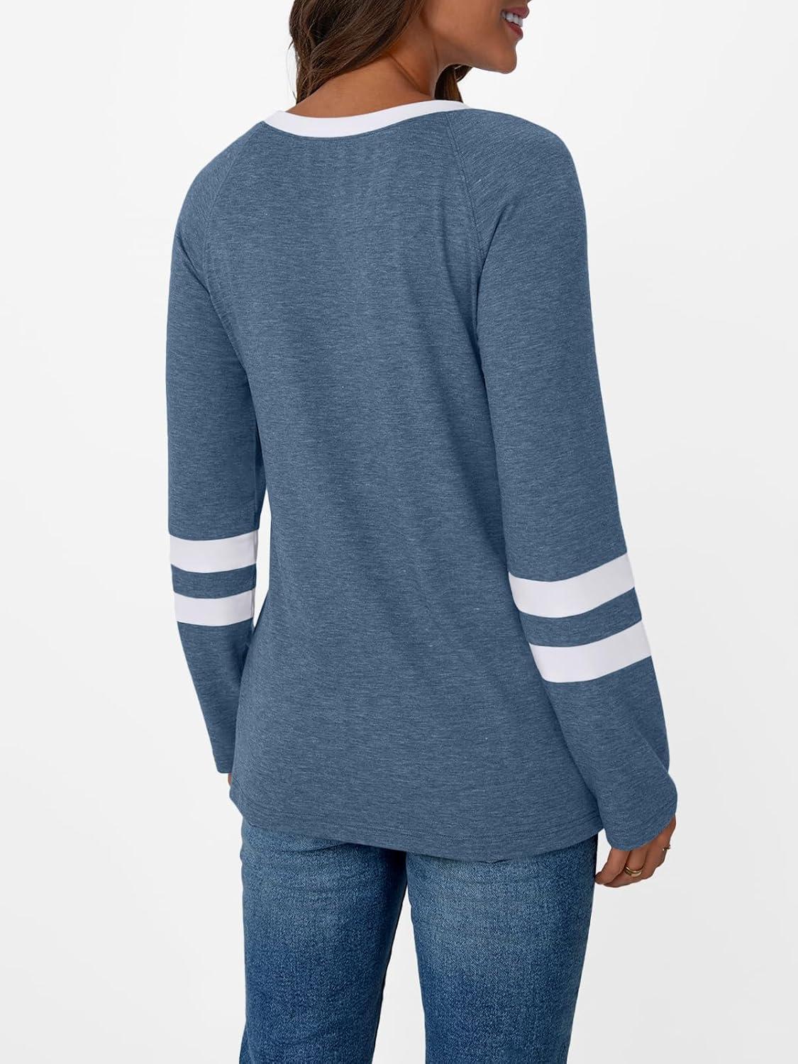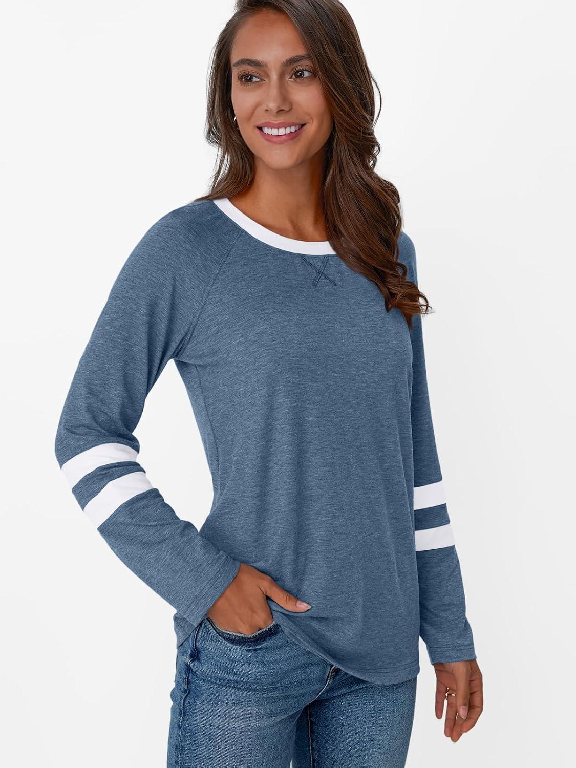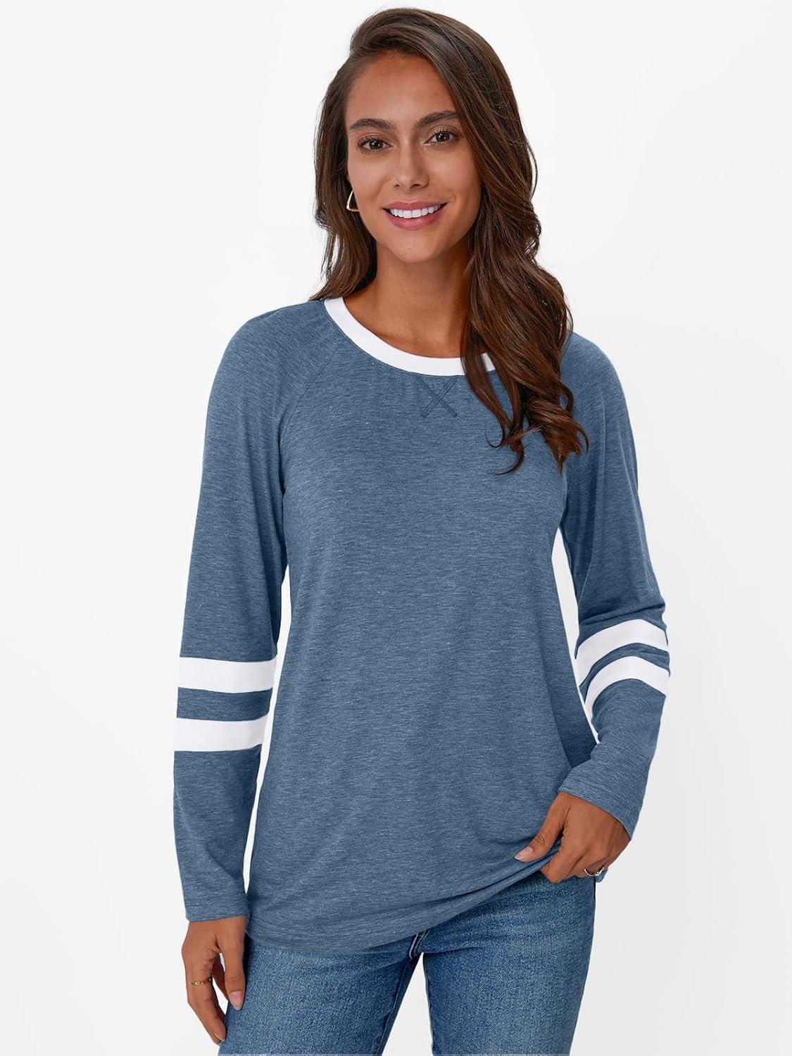 AUTOMET Womens Long Sleeve Shirts Color Block Casual Crewneck Tops Tshirt Basic Tee Fall Fashion Winter Clothing Outfits(Lightblue)