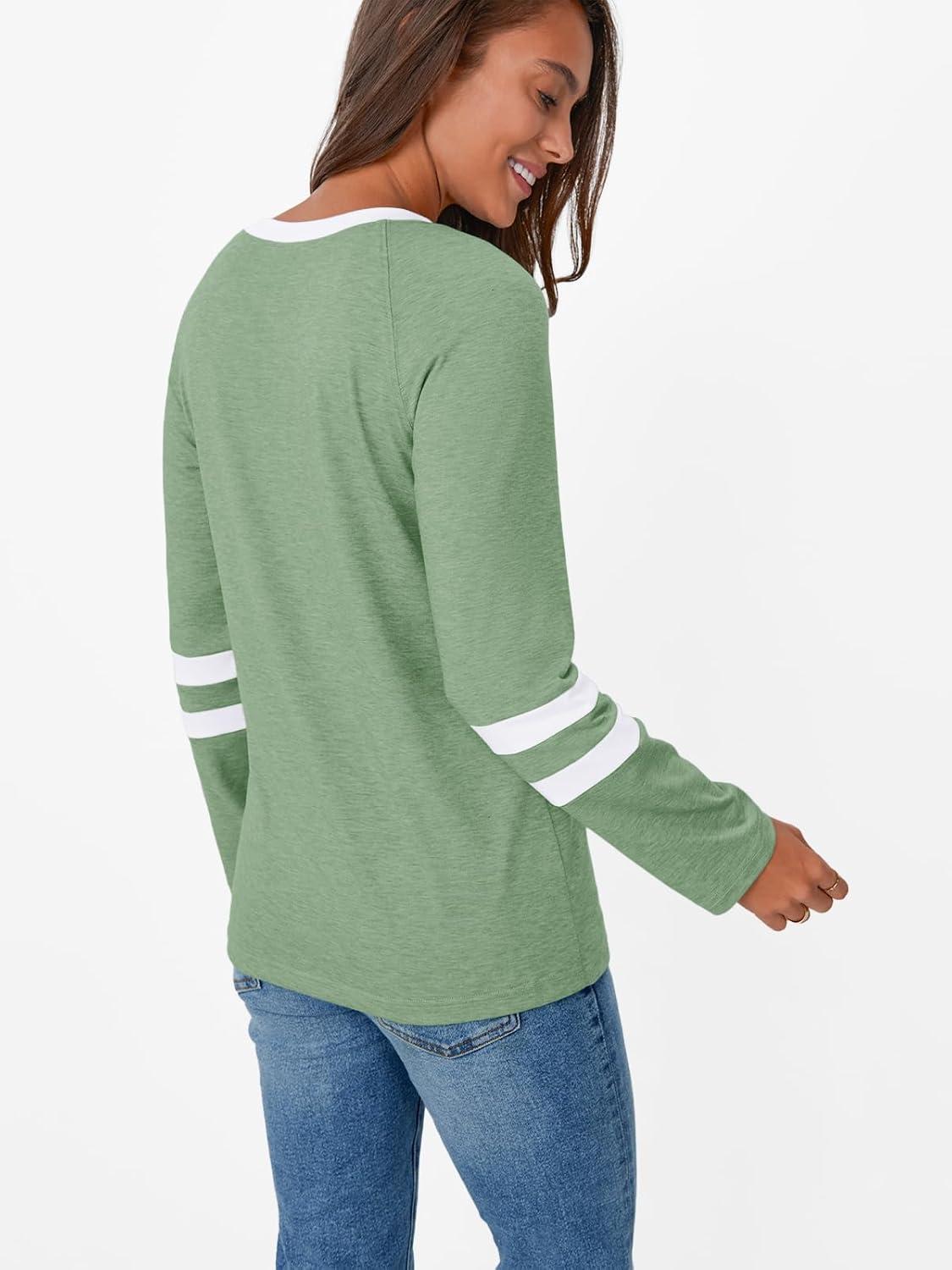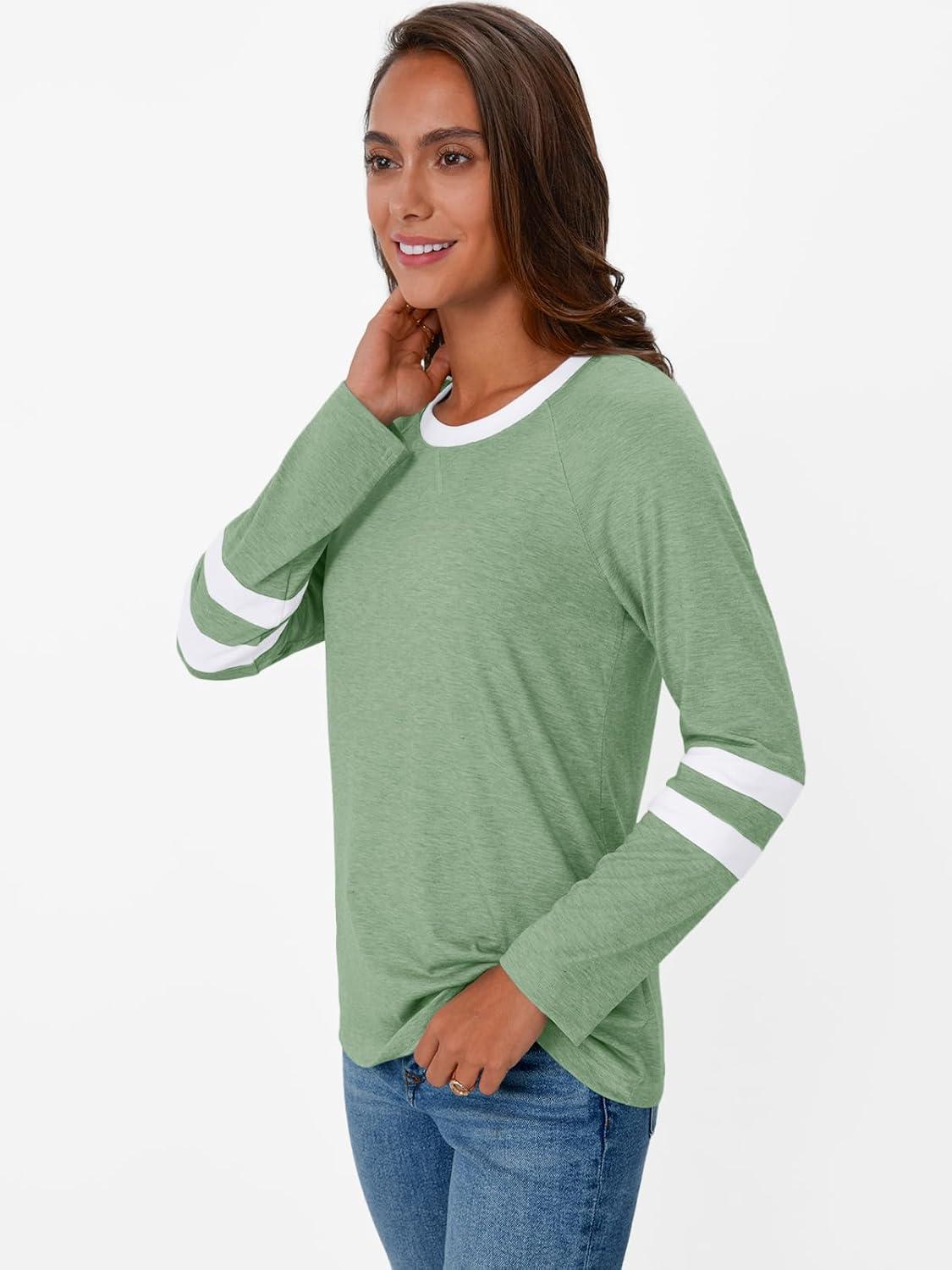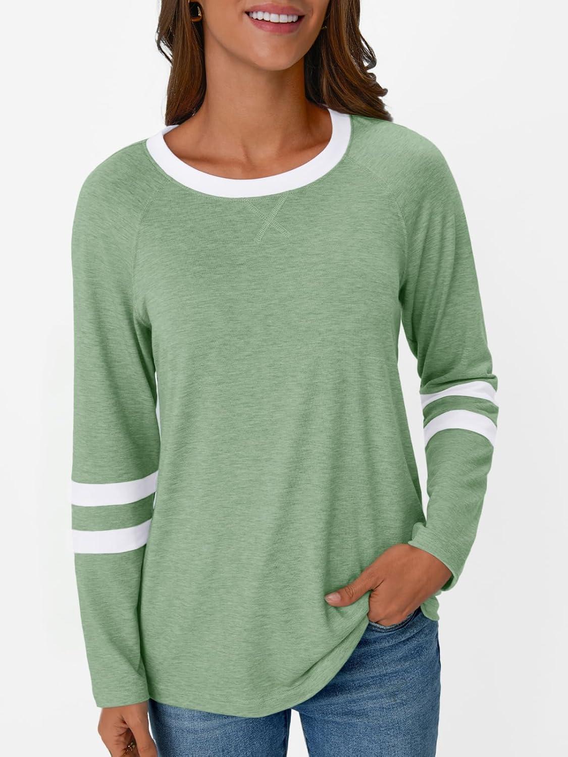 AUTOMET Womens Long Sleeve Shirts Color Block Casual Crewneck Tops Tshirt Basic Tee Fall Fashion Winter Clothing Outfits(Lightgreen)
