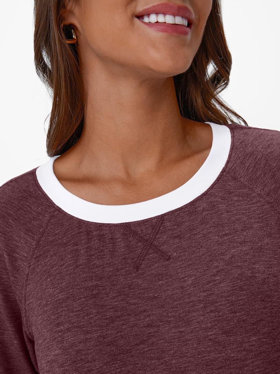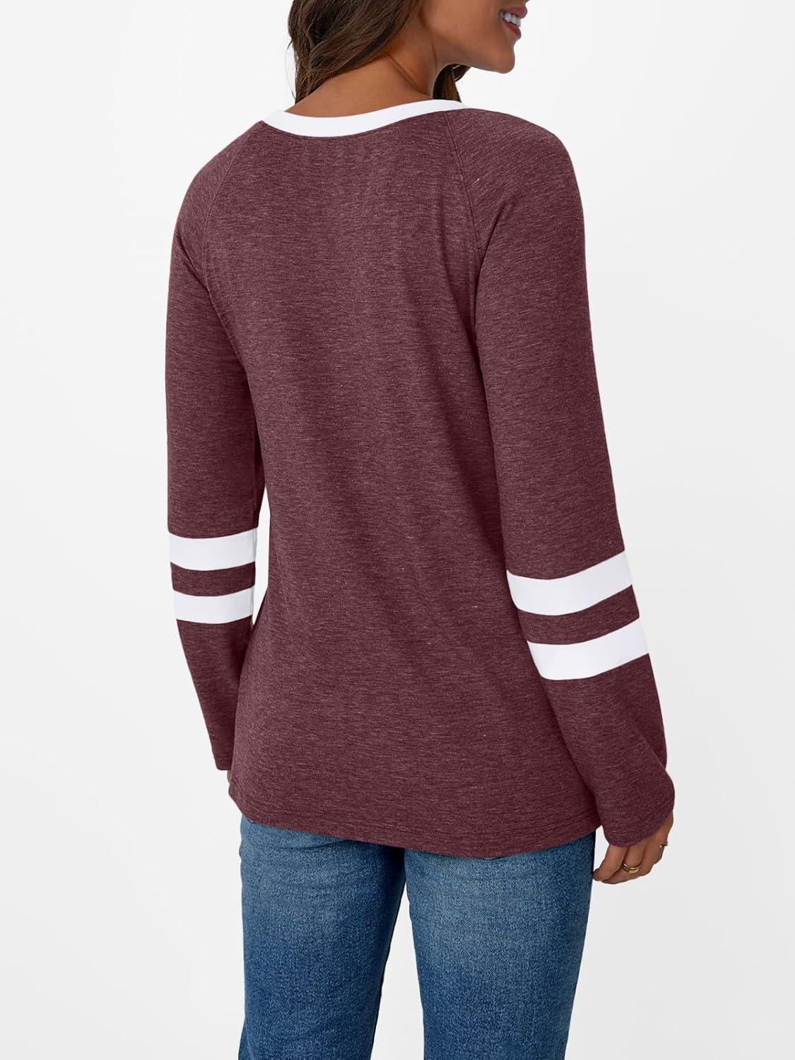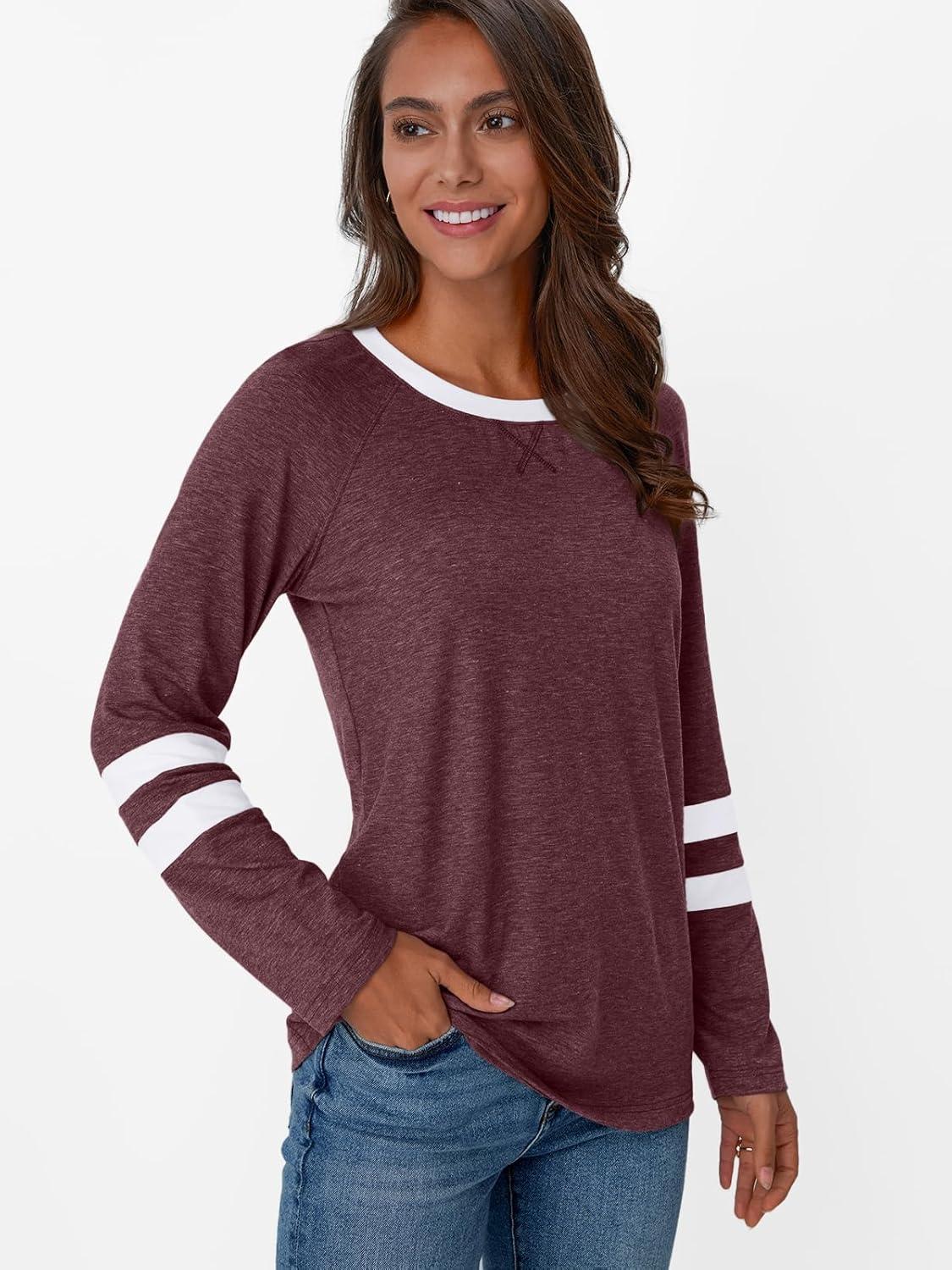 AUTOMET Womens Long Sleeve Shirts Color Block Casual Crewneck Tops Tshirt Basic Tee Fall Fashion Winter Clothing Outfits(Winered)