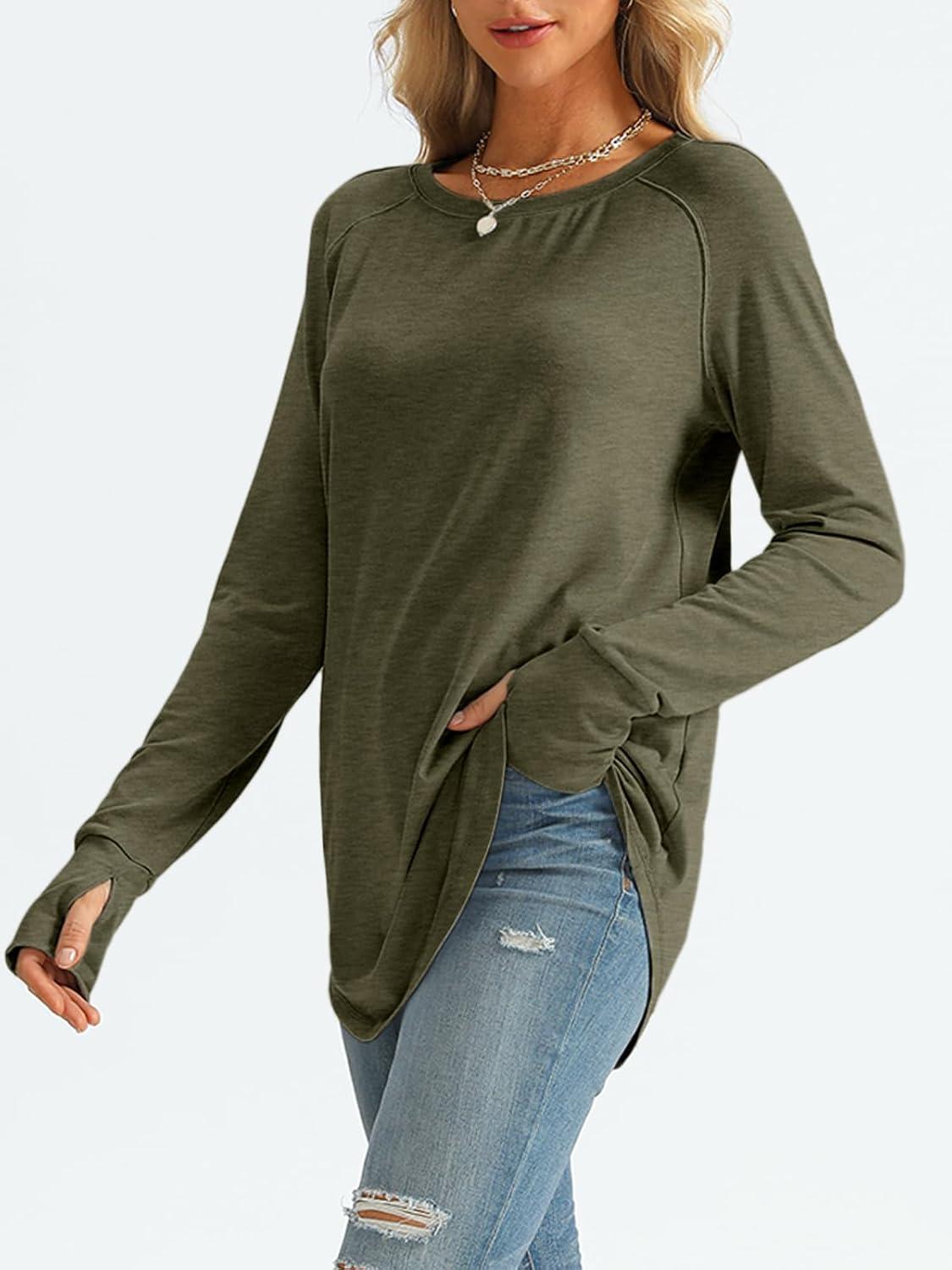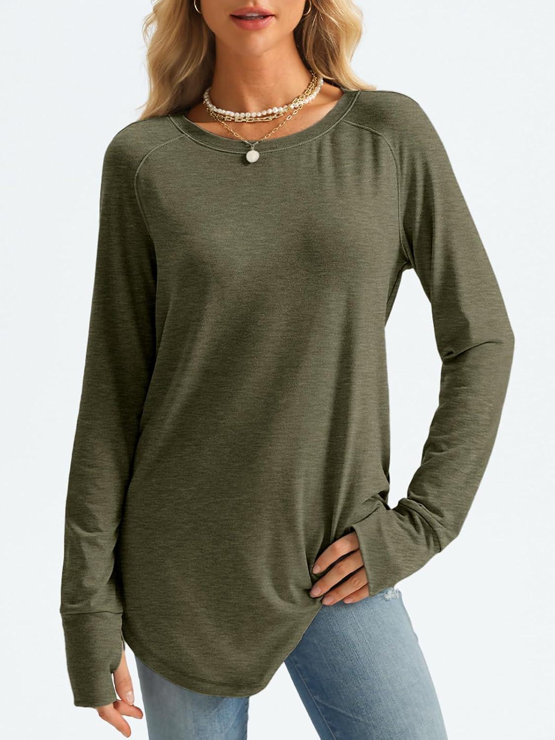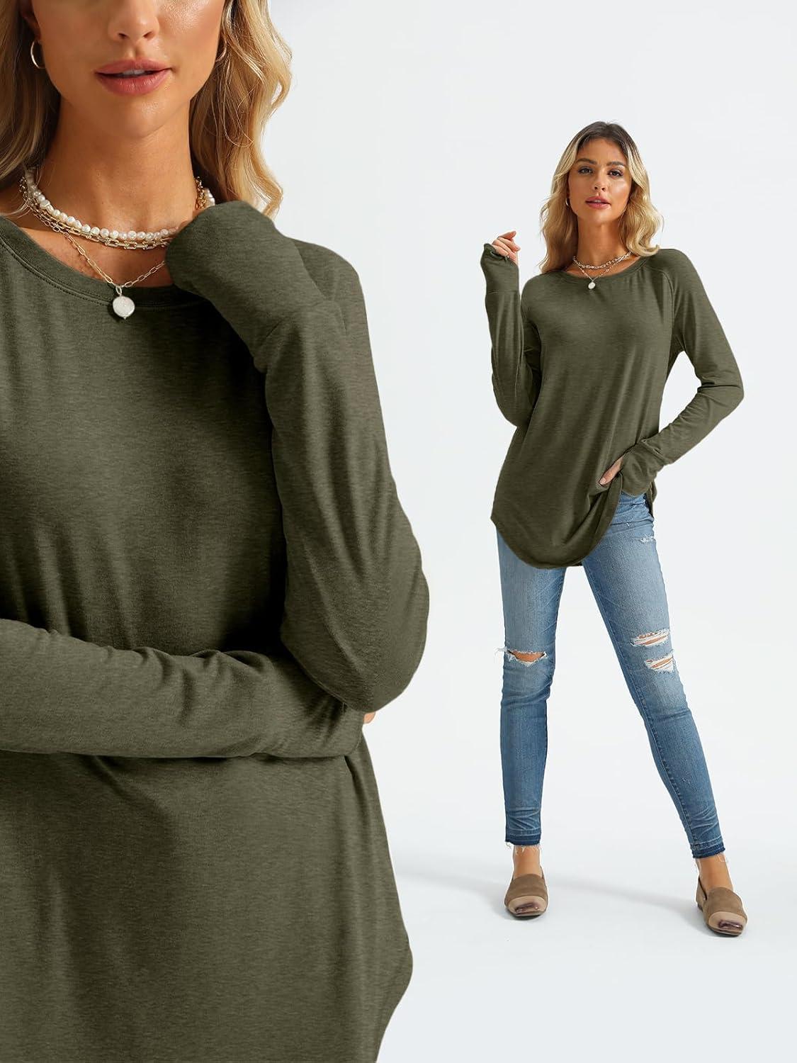 AUTOMET Womens Long Sleeve Shirts Crew Neck Casual Tshirts Fall Fashion Tops Loose Fit Lightweight Y2k Outfits Clothes(Armygreen)