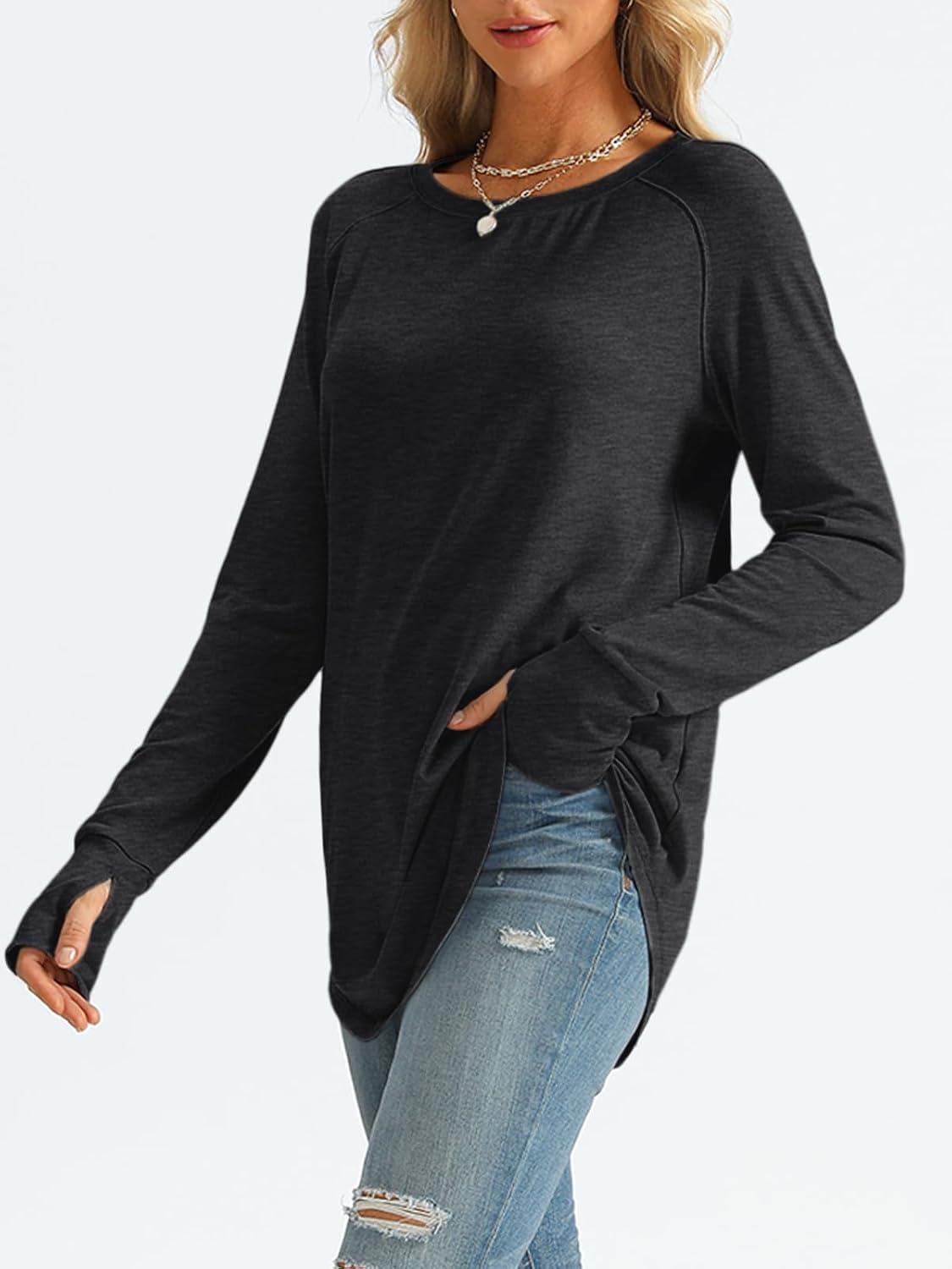 AUTOMET Womens Long Sleeve Shirts Crew Neck Casual Tshirts Fall Fashion Tops Loose Fit Lightweight Y2k Outfits Clothes(Black)