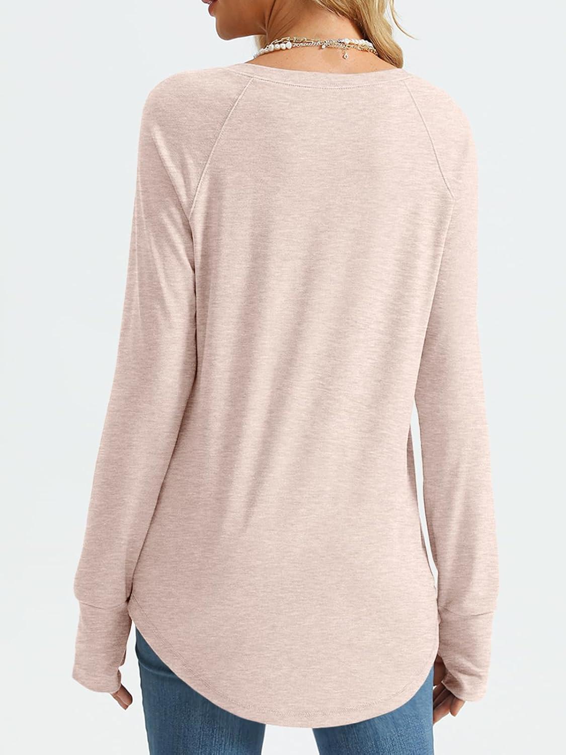AUTOMET Womens Long Sleeve Shirts Crew Neck Casual Tshirts Fall Fashion Tops Loose Fit Lightweight Y2k Outfits Clothes(Pink)