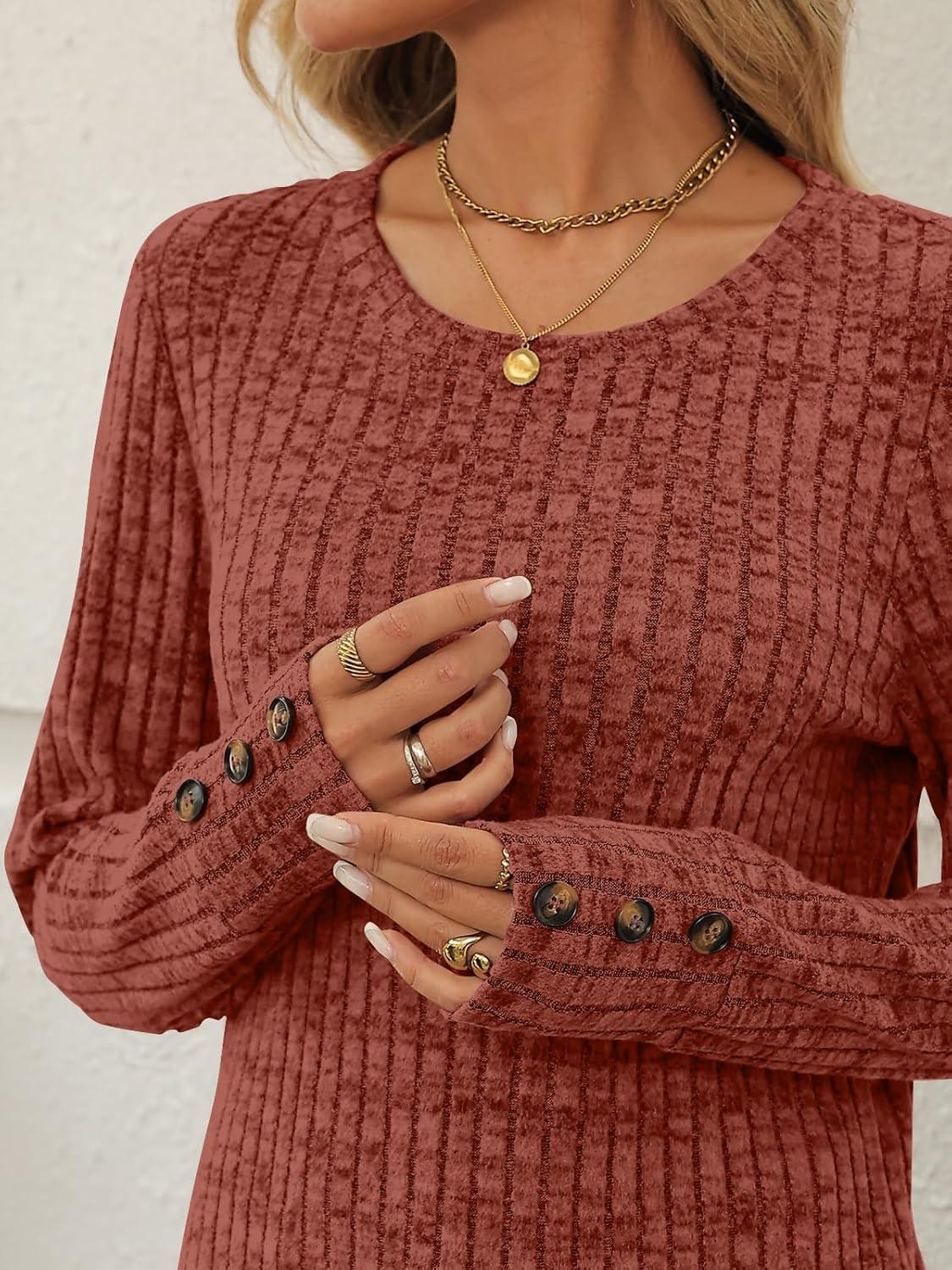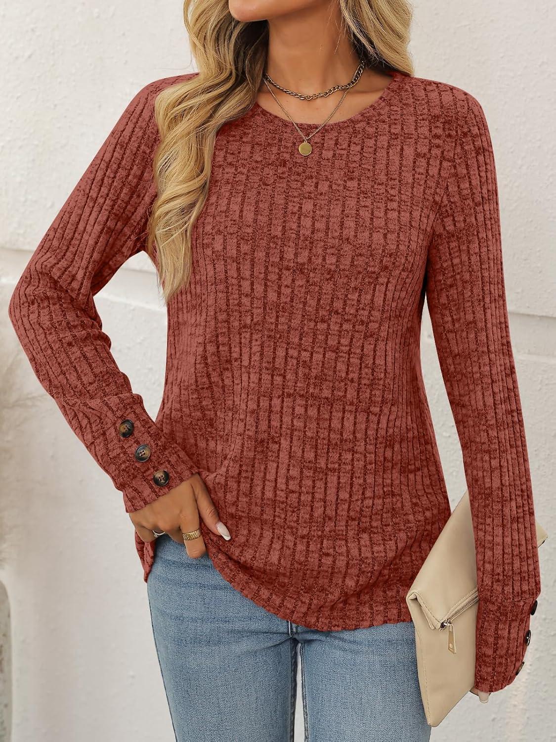 AUTOMET Women’s Long Sleeve Shirts Fall Sweaters Lightweight Cute Tunic Tops Trendy Fashion Clothes 2025 Outfits(Caramel)