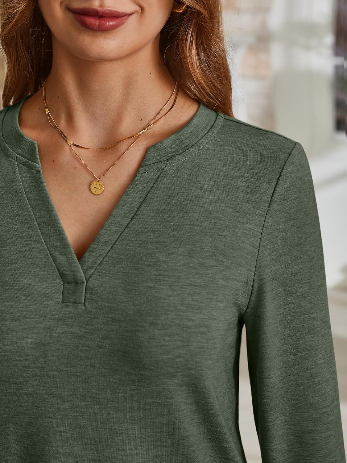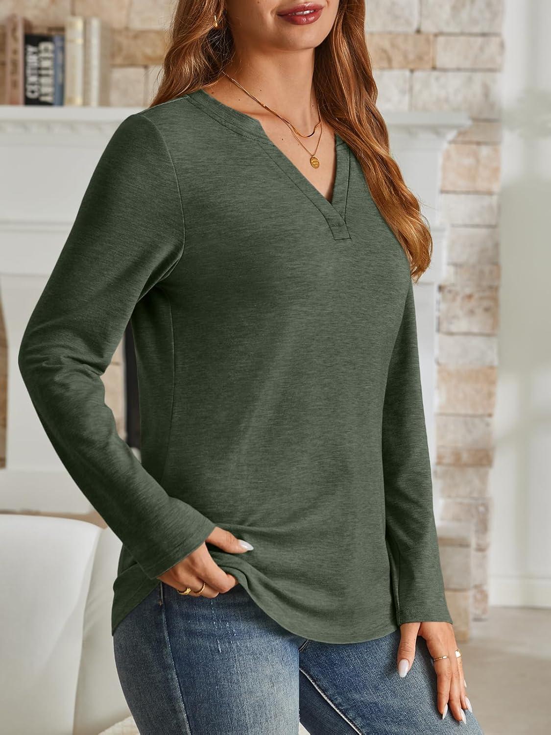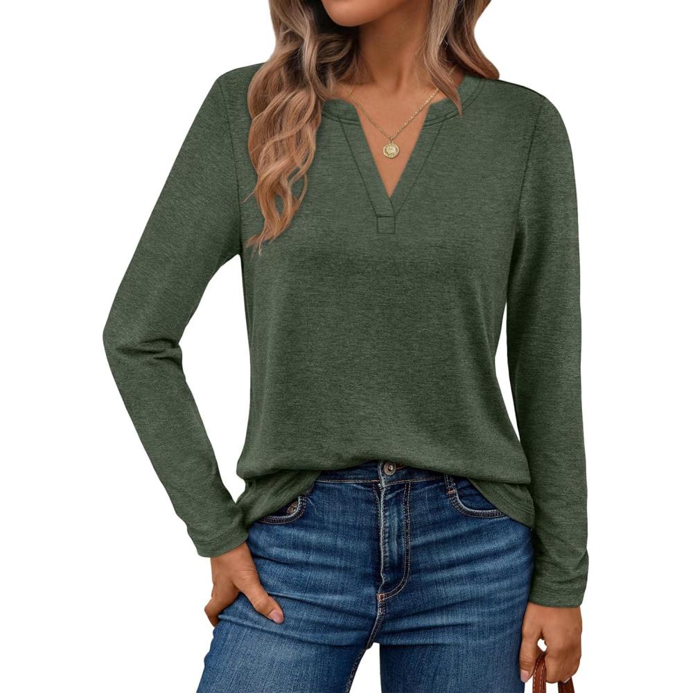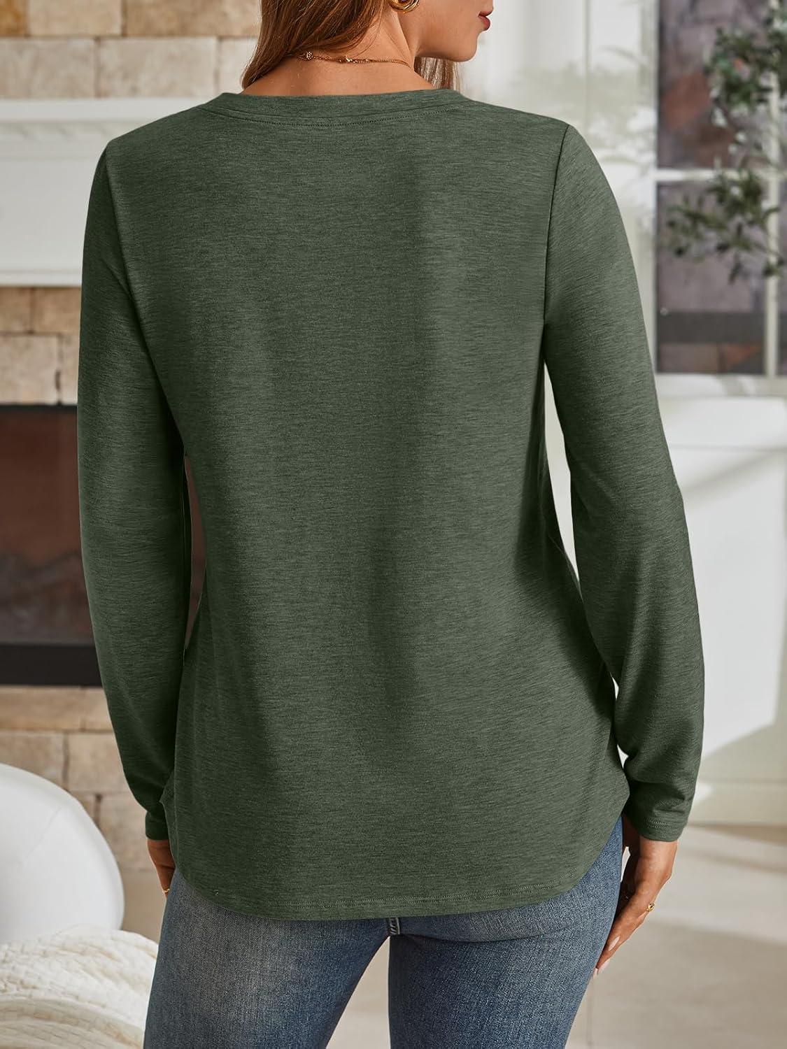 AUTOMET Womens Long Sleeve Shirts Fall Tops 2025 Henley Blouses Dressy Casual Business Basic Tees Trendy Cute T-Shirts(Armygreen)