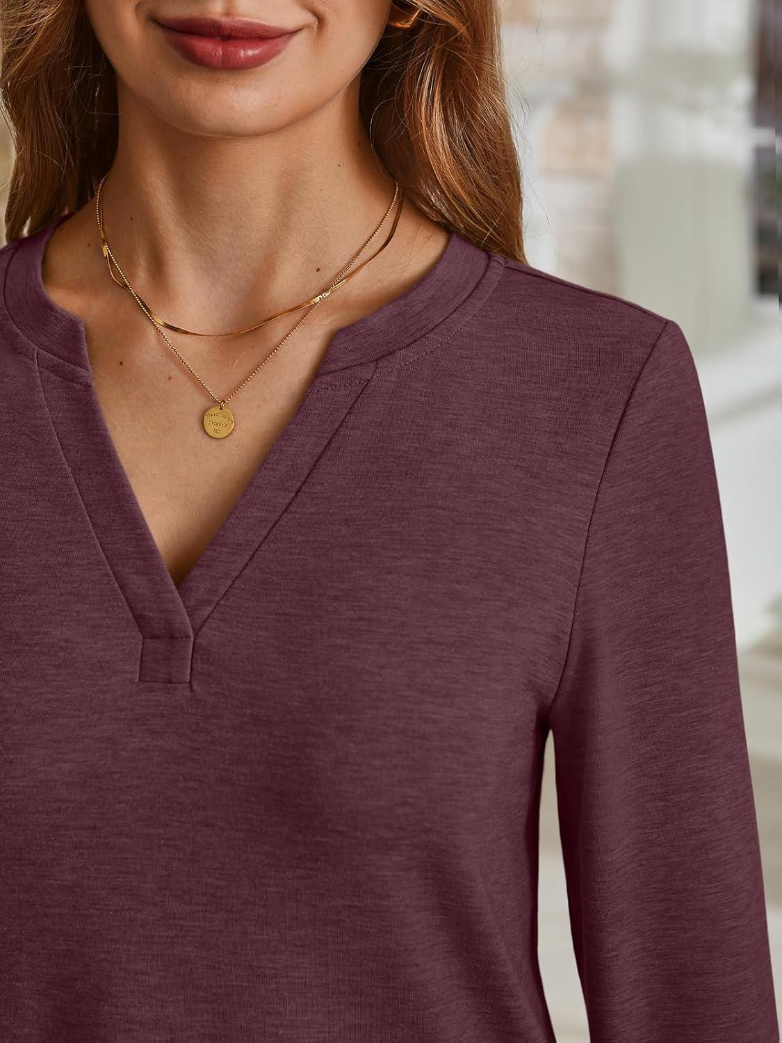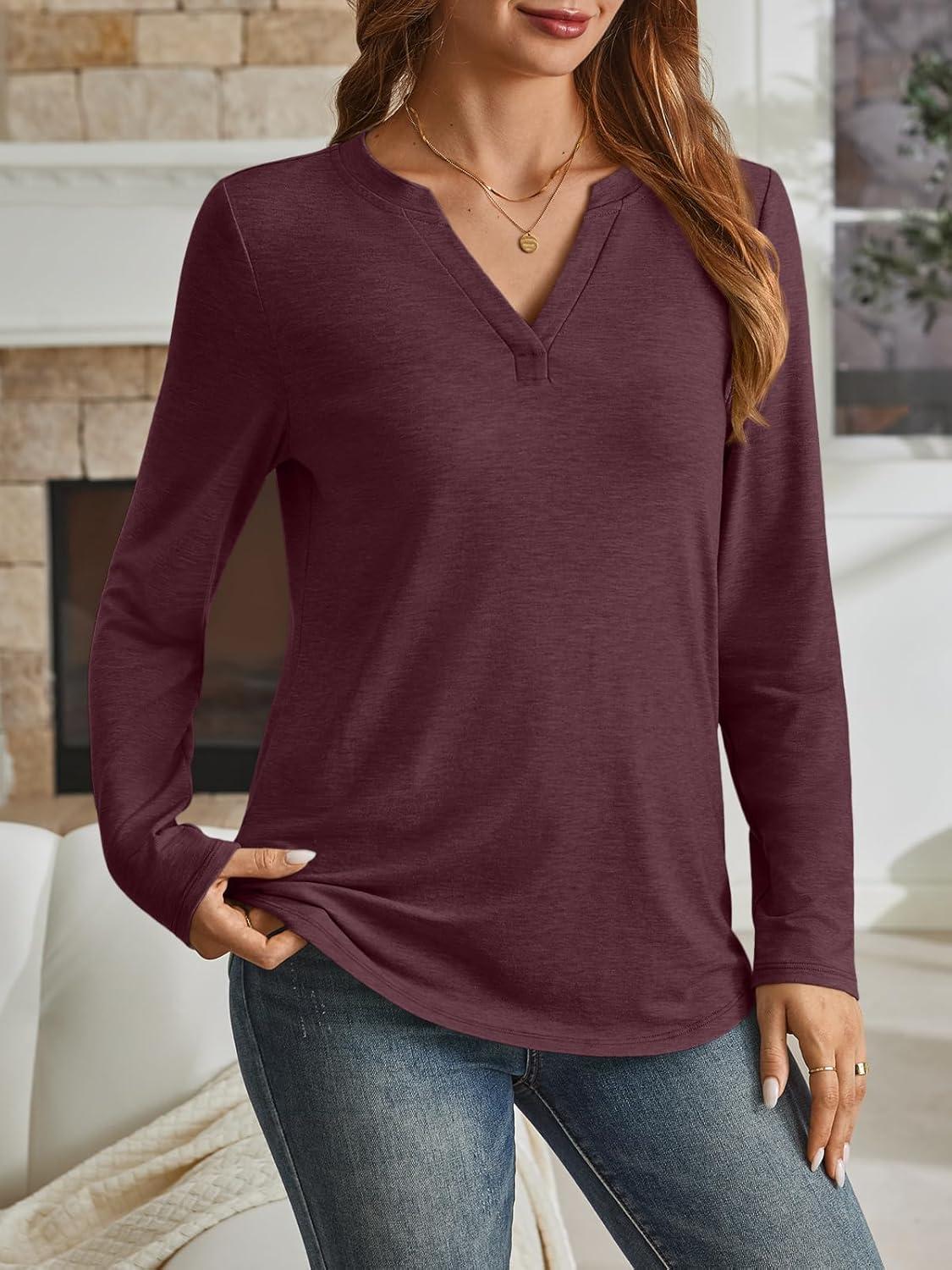 AUTOMET Womens Long Sleeve Shirts Fall Tops 2025 Henley Blouses Dressy Casual Business Basic Tees Trendy Cute T-Shirts(Winered)