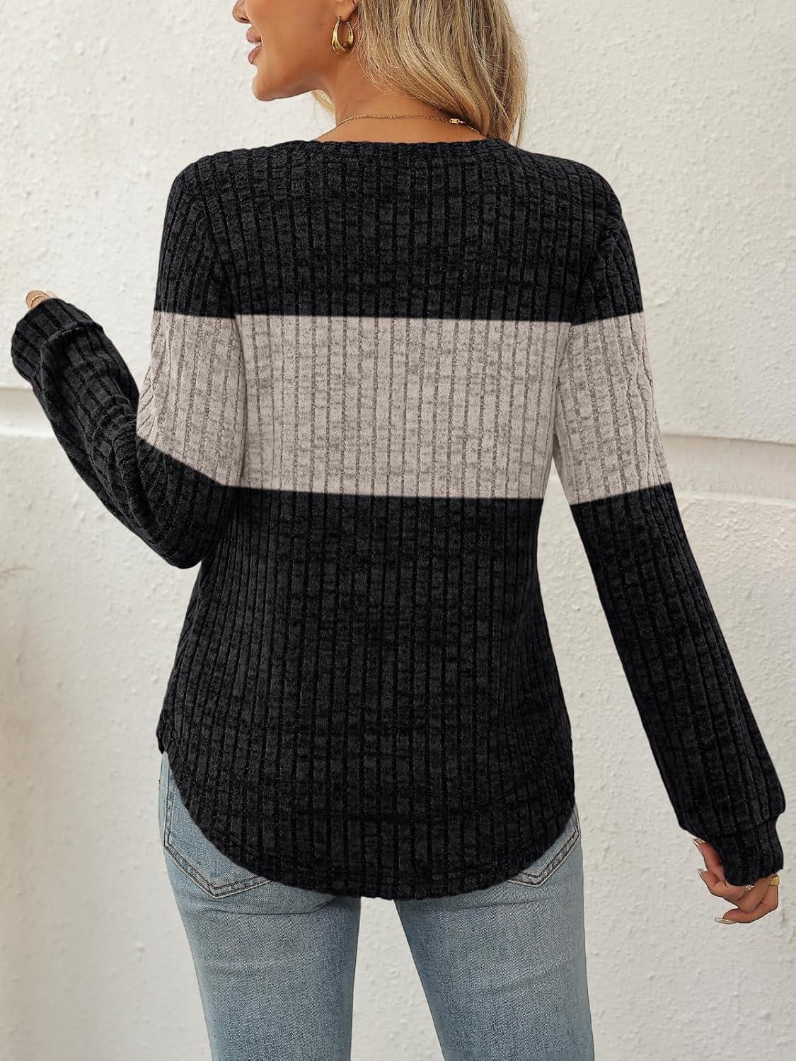 AUTOMET Womens Long Sleeve Shirts Fall Tops Tunic Fashion Outfits 2025 Dressy Casual Loose Fit Sweater Clothes Curved Hem(Blackapricotblock)
