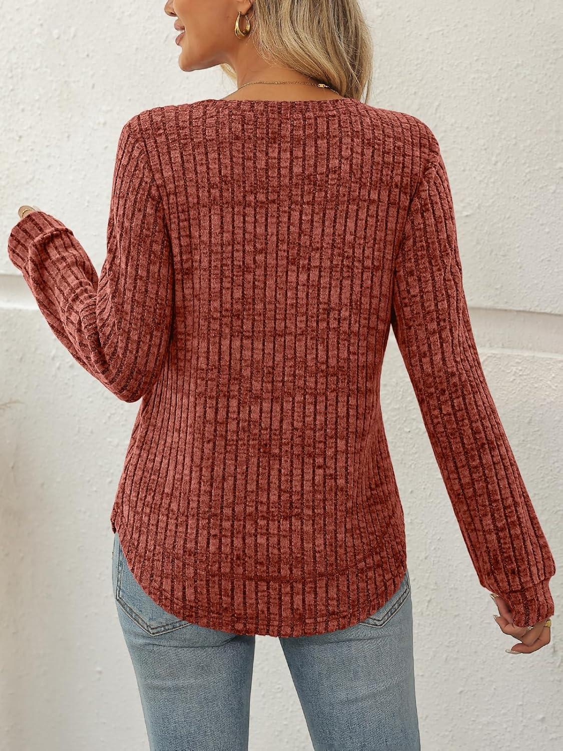 AUTOMET Womens Long Sleeve Shirts Fall Tops Tunic Fashion Outfits 2025 Dressy Casual Loose Fit Sweater Clothes Curved Hem(Caramel)