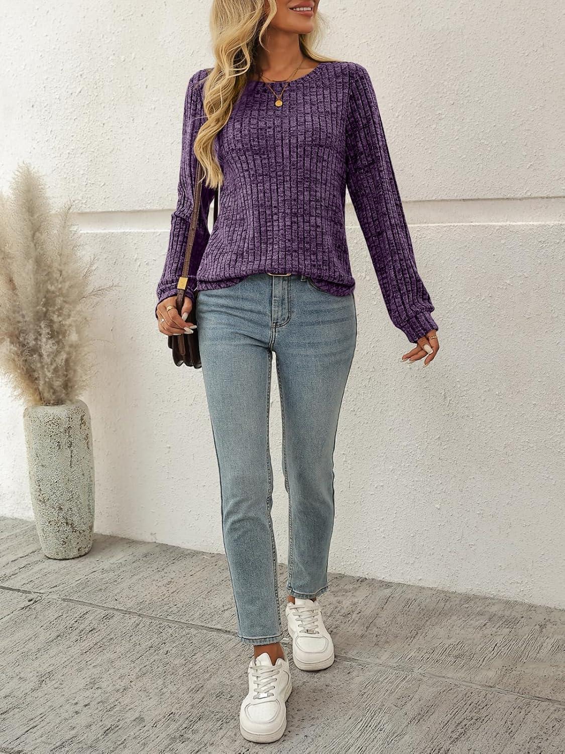 AUTOMET Womens Long Sleeve Shirts Fall Tops Tunic Fashion Outfits 2025 Dressy Casual Loose Fit Sweater Clothes Curved Hem(Purple)