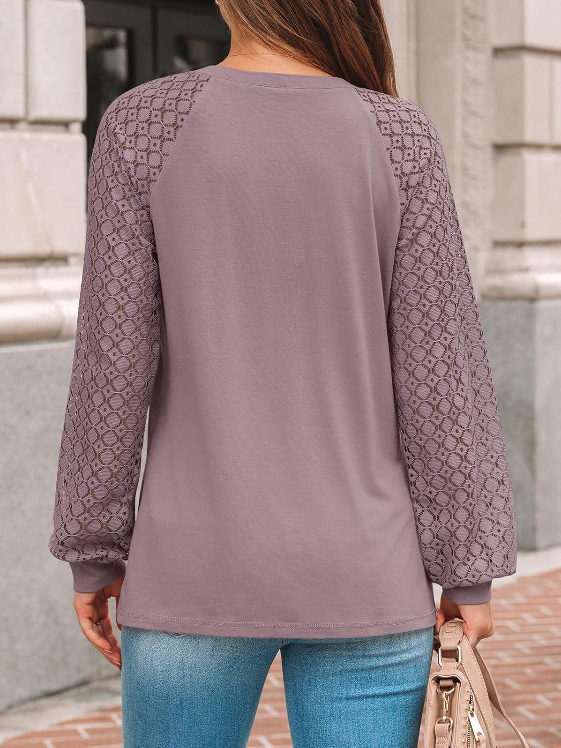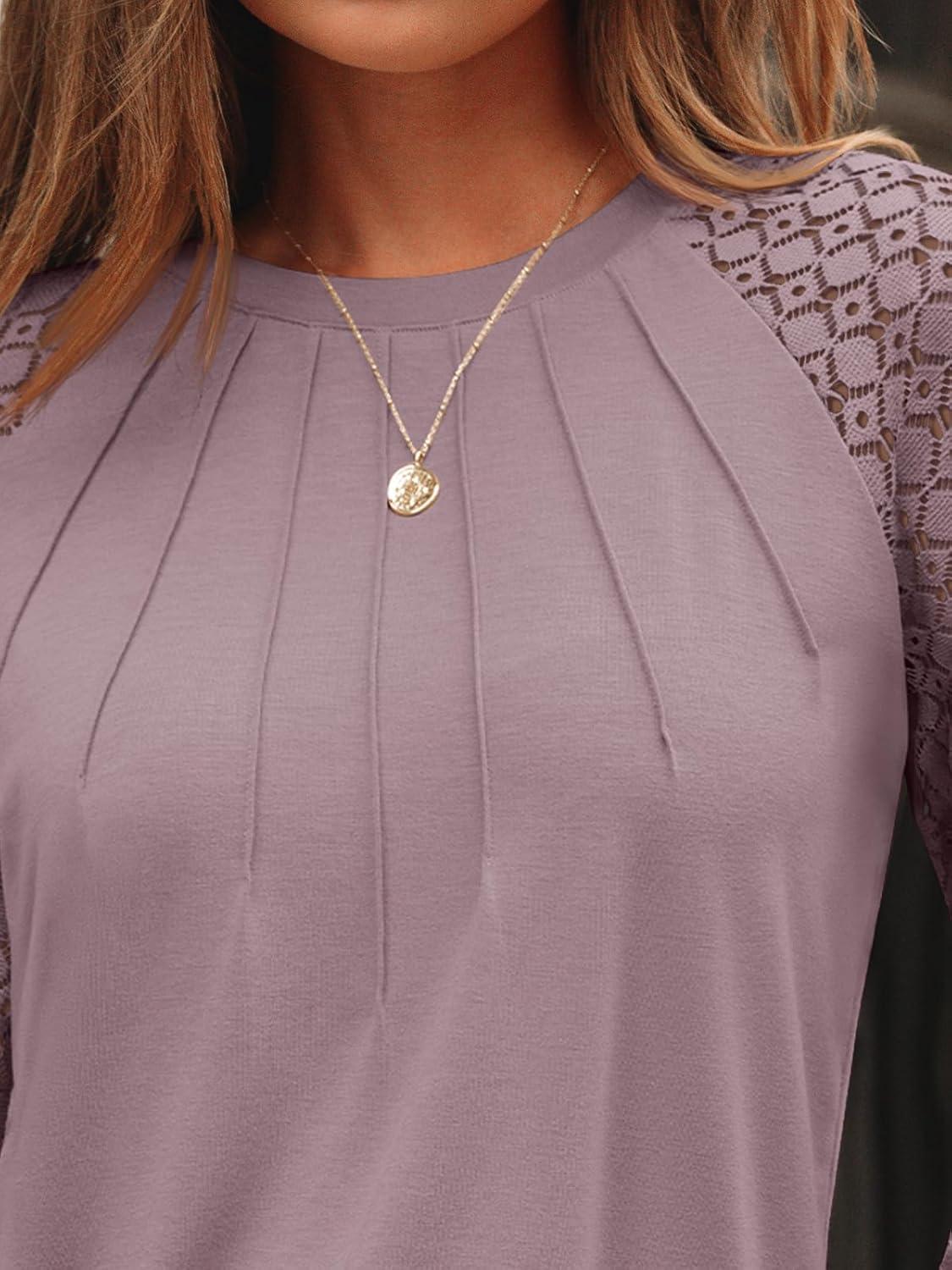 AUTOMET Womens Long Sleeve Shirts Pleated Lace Tops Fall Fashion Outfits Business Casual Blouses(Lilac)