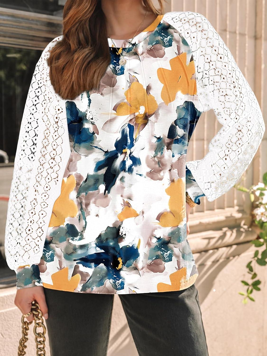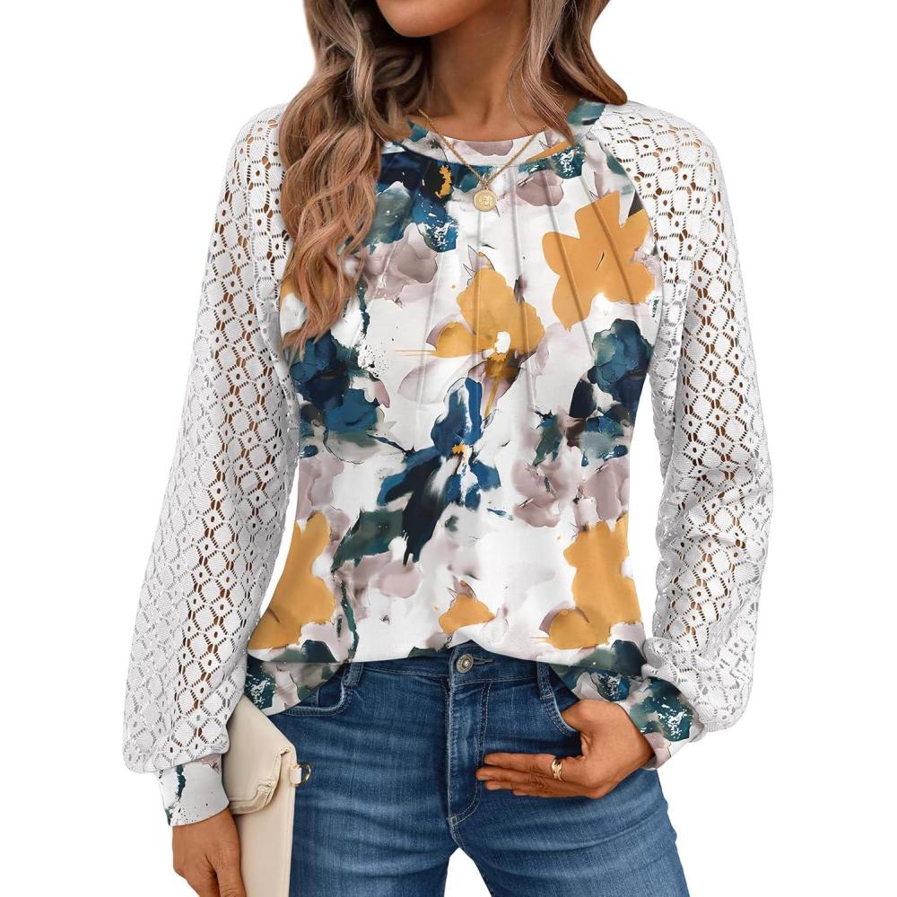 AUTOMET Womens Long Sleeve Shirts Pleated Lace Tops Fall Fashion Outfits Business Casual Blouses(Watercolor Floral)