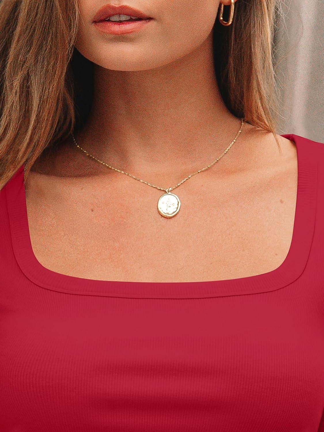 AUTOMET Womens Long Sleeve Shirts Square Neck Tops Ribbed Knit Basic Teen Girls Crop Tops Fall Outfits Fashion Clothes 2025(Red)