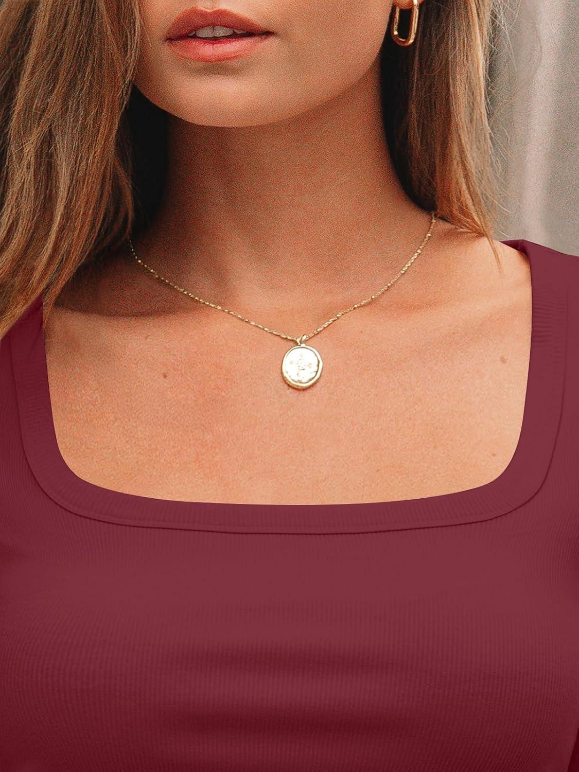 AUTOMET Womens Long Sleeve Shirts Square Neck Tops Ribbed Knit Basic Teen Girls Crop Tops Fall Outfits Fashion Clothes 2025(Wine)