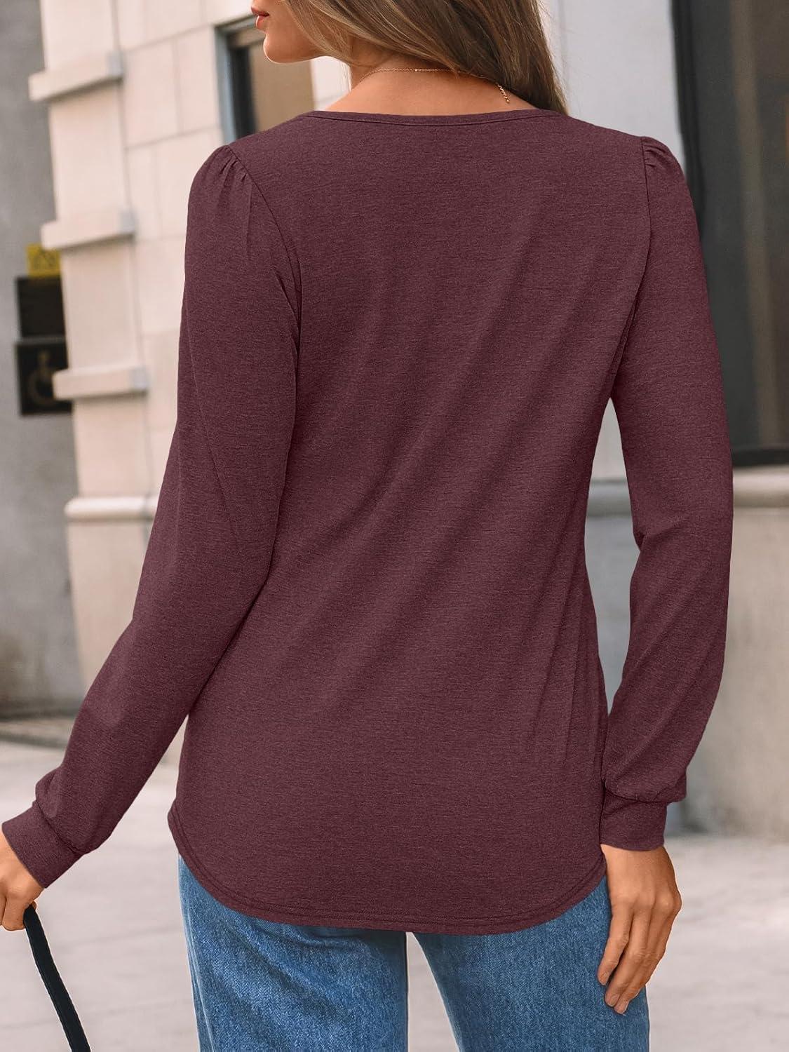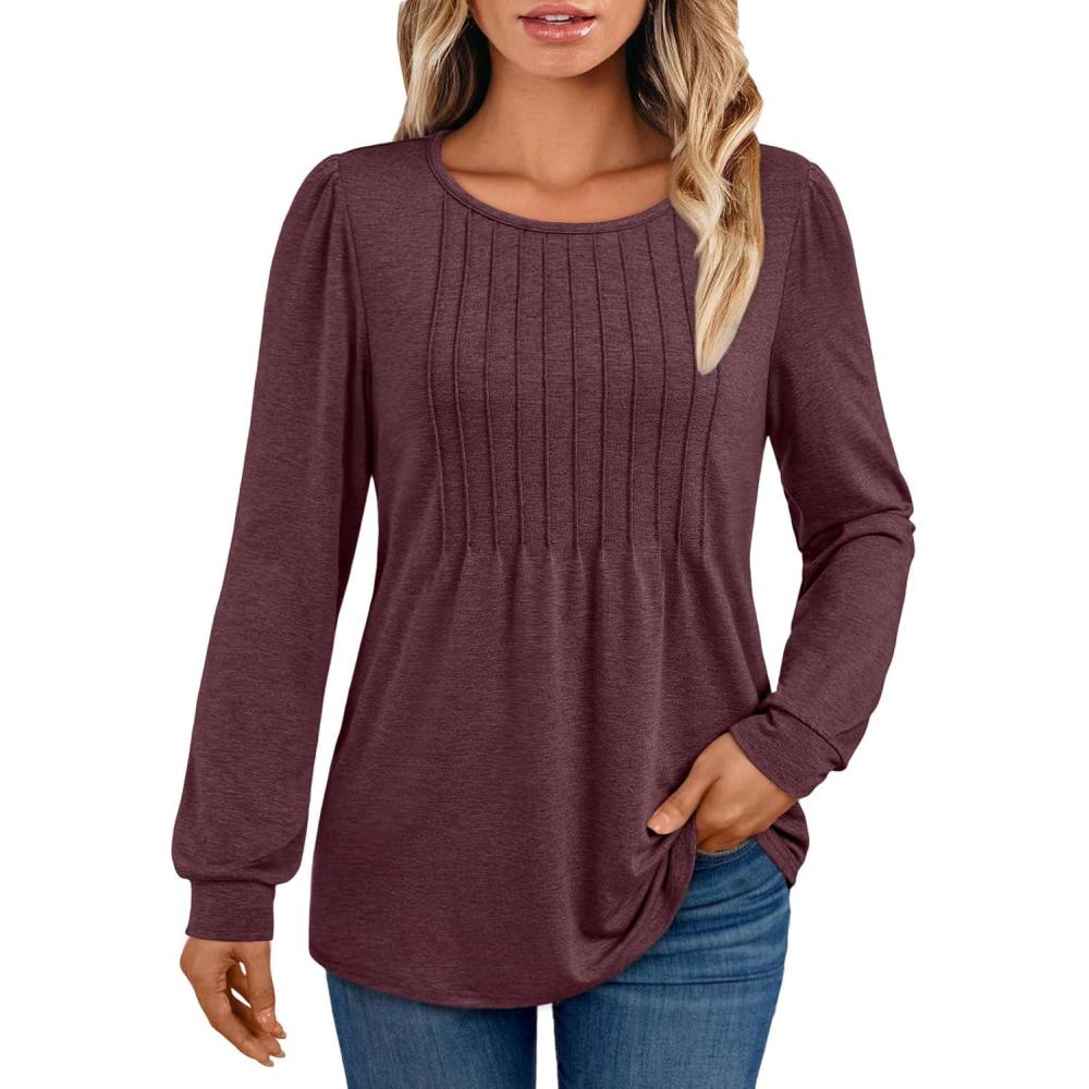 AUTOMET Womens Long Sleeve T-Shirts Dressy Business Casual Tops Tunic Fall Fashion Crewneck Blouse Trendy Winter Outfits 2025(Winered)
