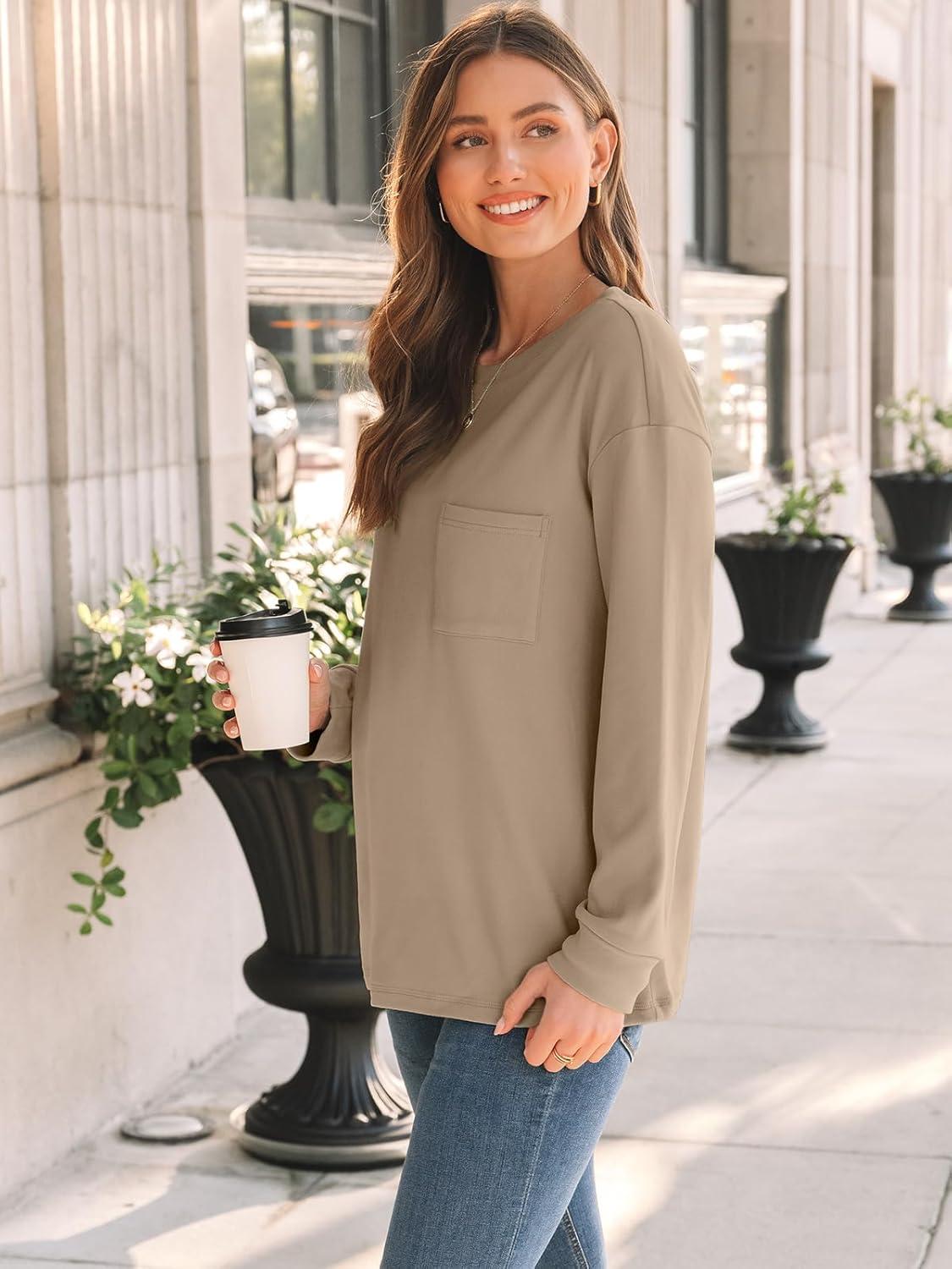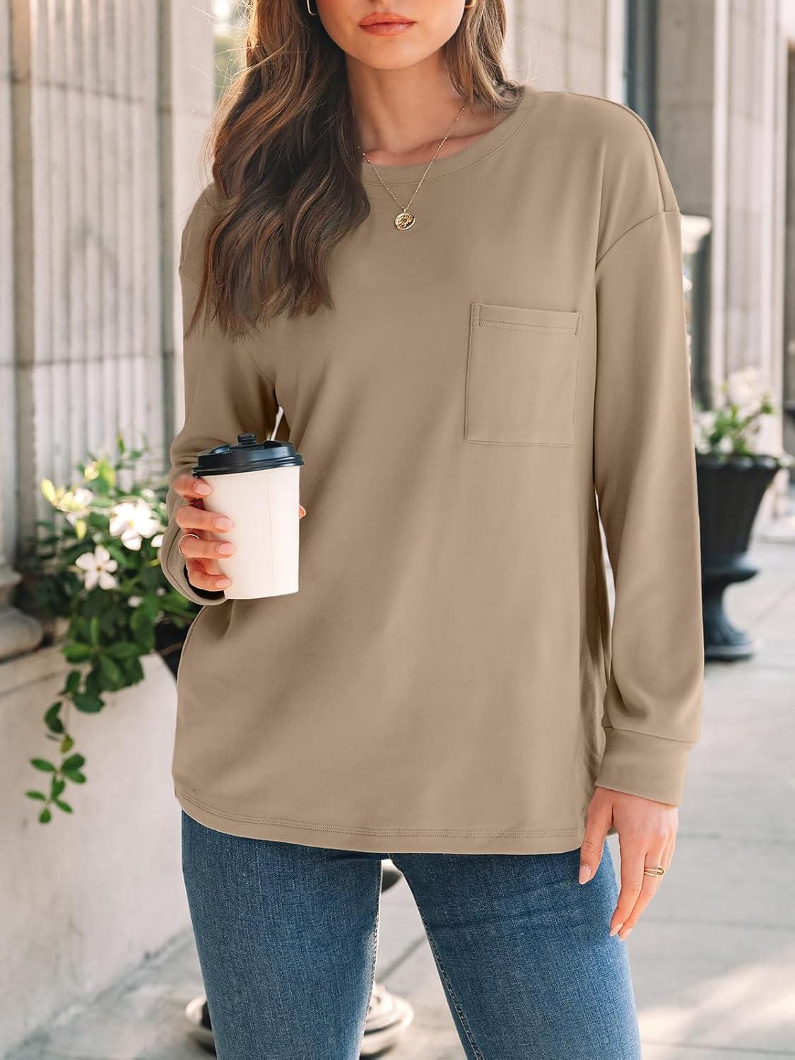 AUTOMET Womens Long Sleeve T Shirts Fall Tops Crewneck Oversized Sweatshirts Winter Cute Clothing Trendy Teacher Outfits(Coffee Grey)