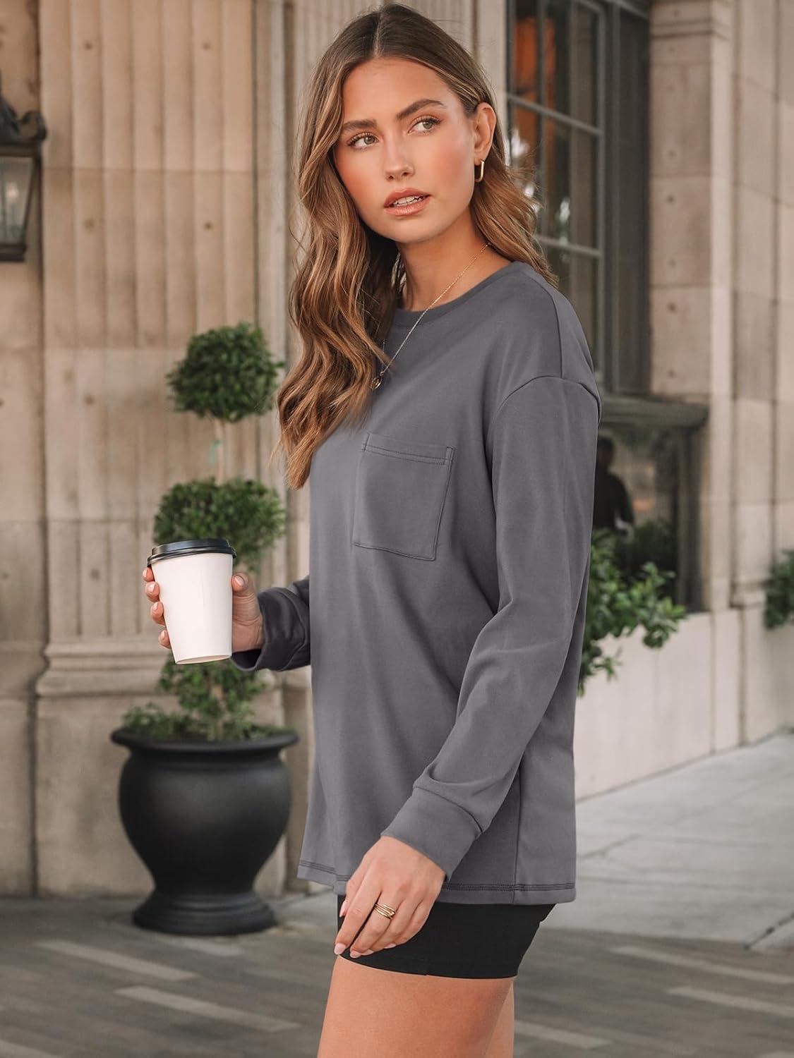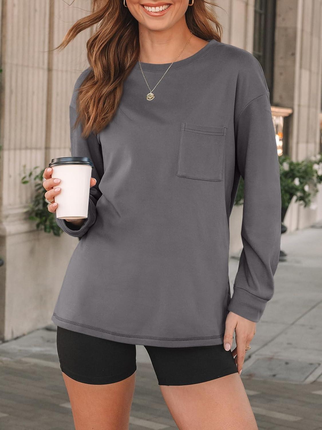 AUTOMET Womens Long Sleeve T Shirts Fall Tops Crewneck Oversized Sweatshirts Winter Cute Clothing Trendy Teacher Outfits(Grey)