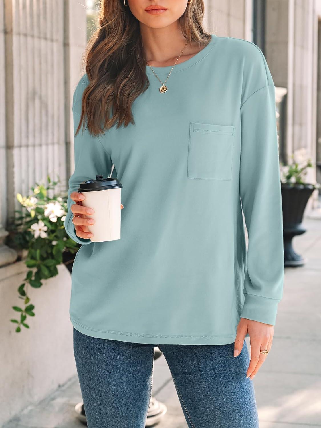 AUTOMET Womens Long Sleeve T Shirts Fall Tops Crewneck Oversized Sweatshirts Winter Cute Clothing Trendy Teacher Outfits(Light Green)