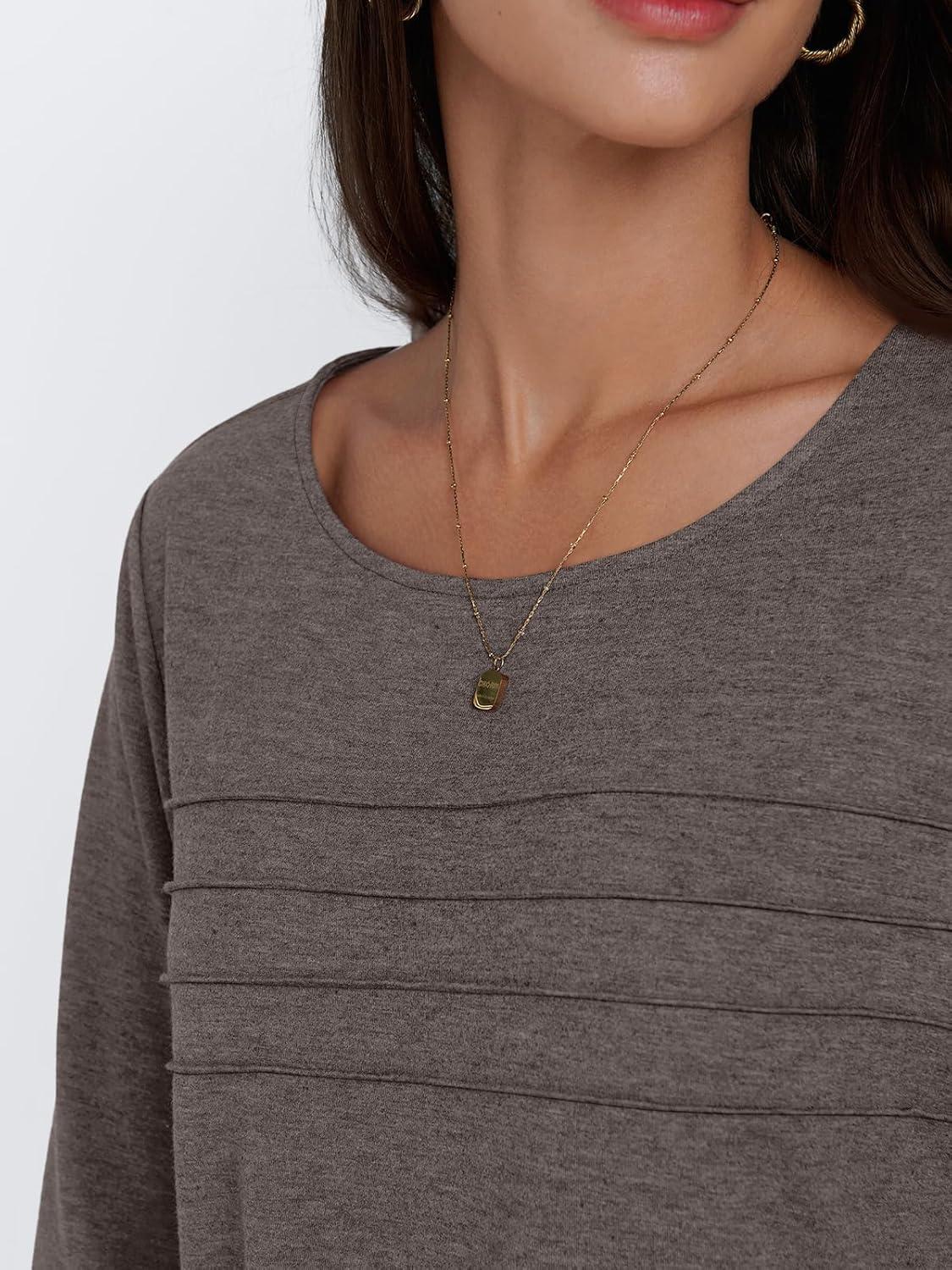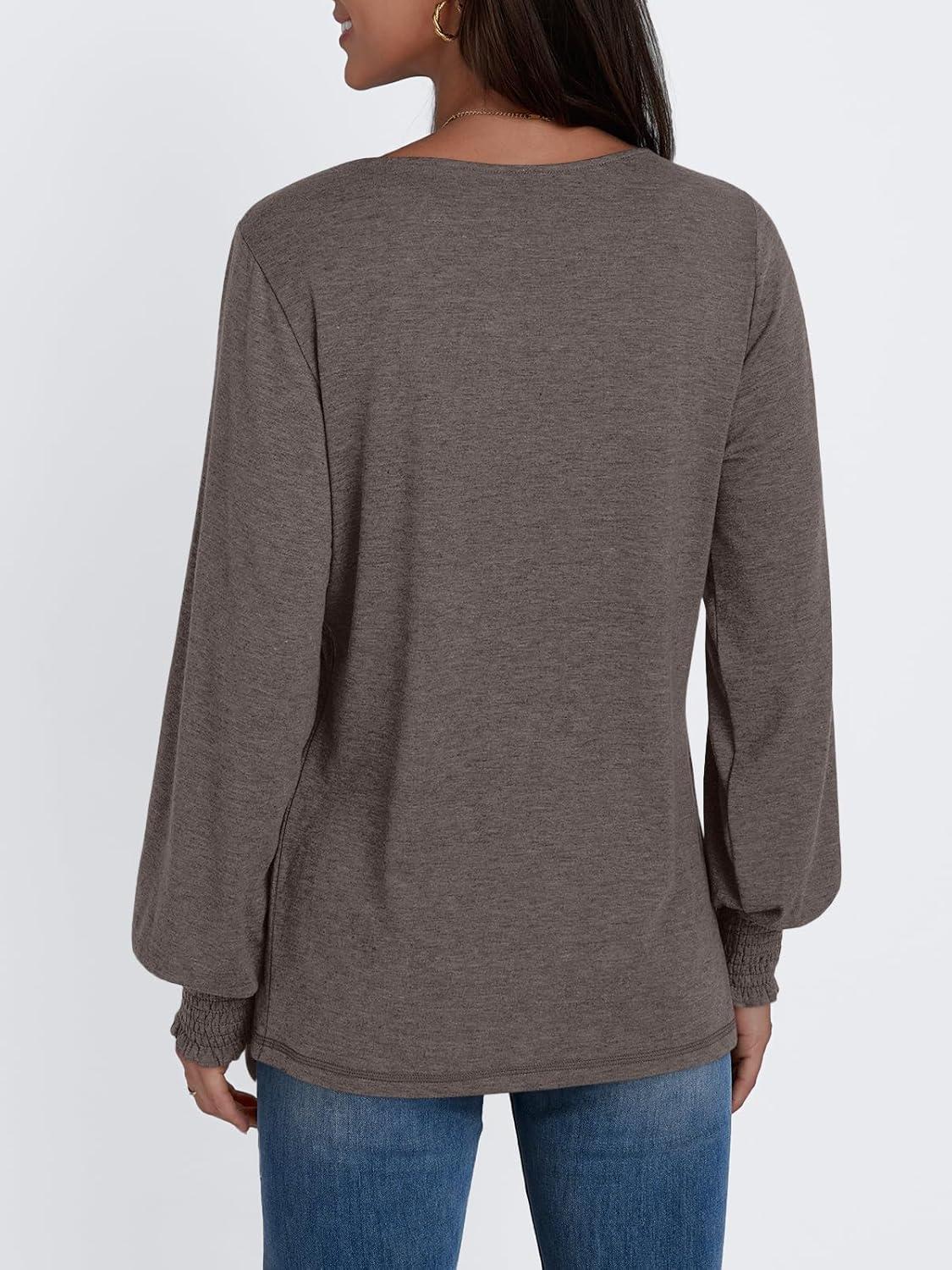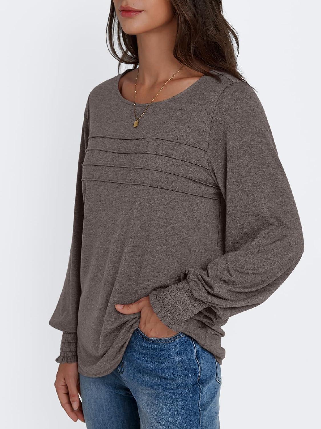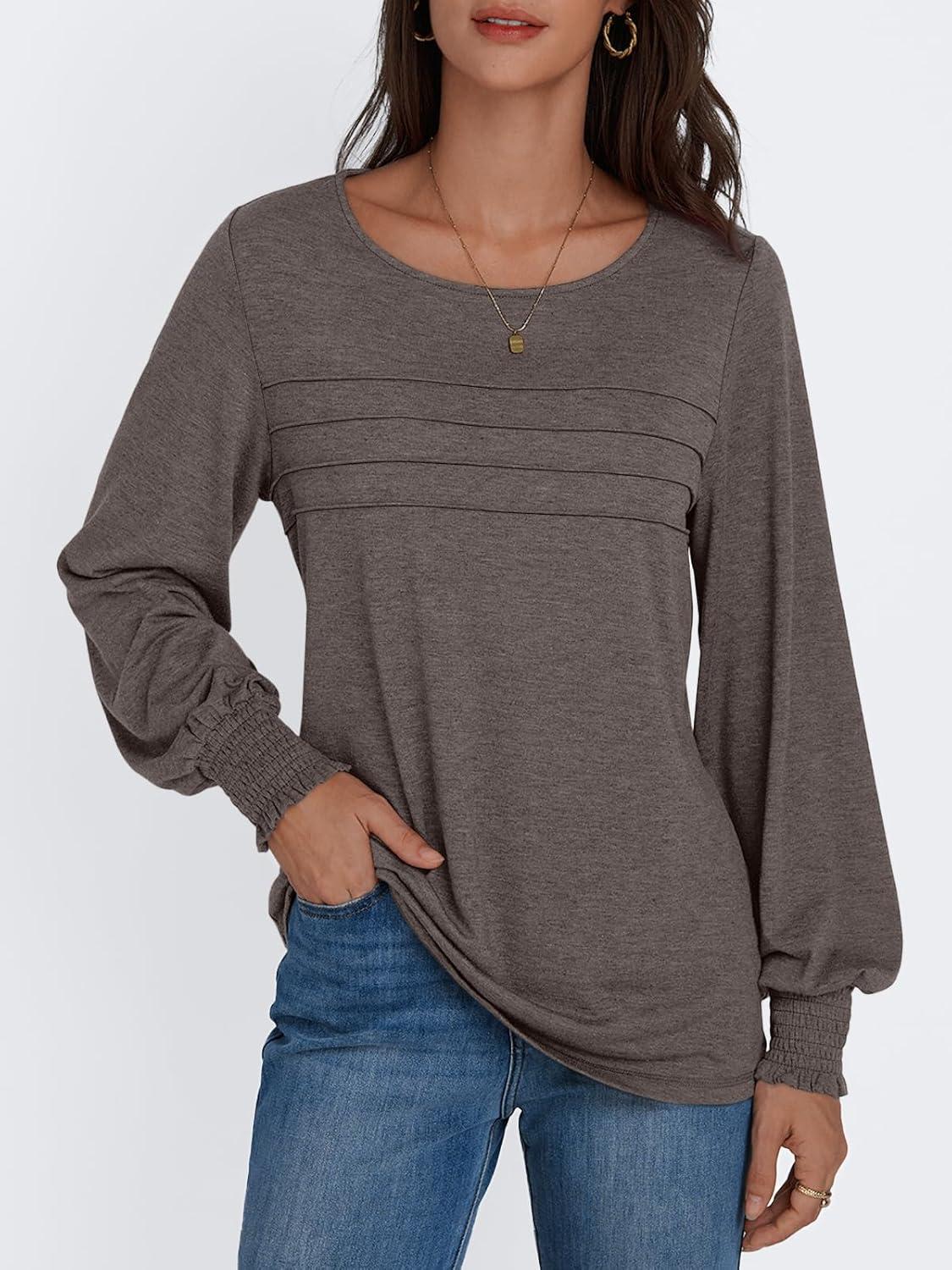 AUTOMET Womens Long Sleeve Tops Blouses Dressy Casual Business Crew Neck Tunic Loose Fit Trendy Outfits Fashion Clothes(Coffee Grey)